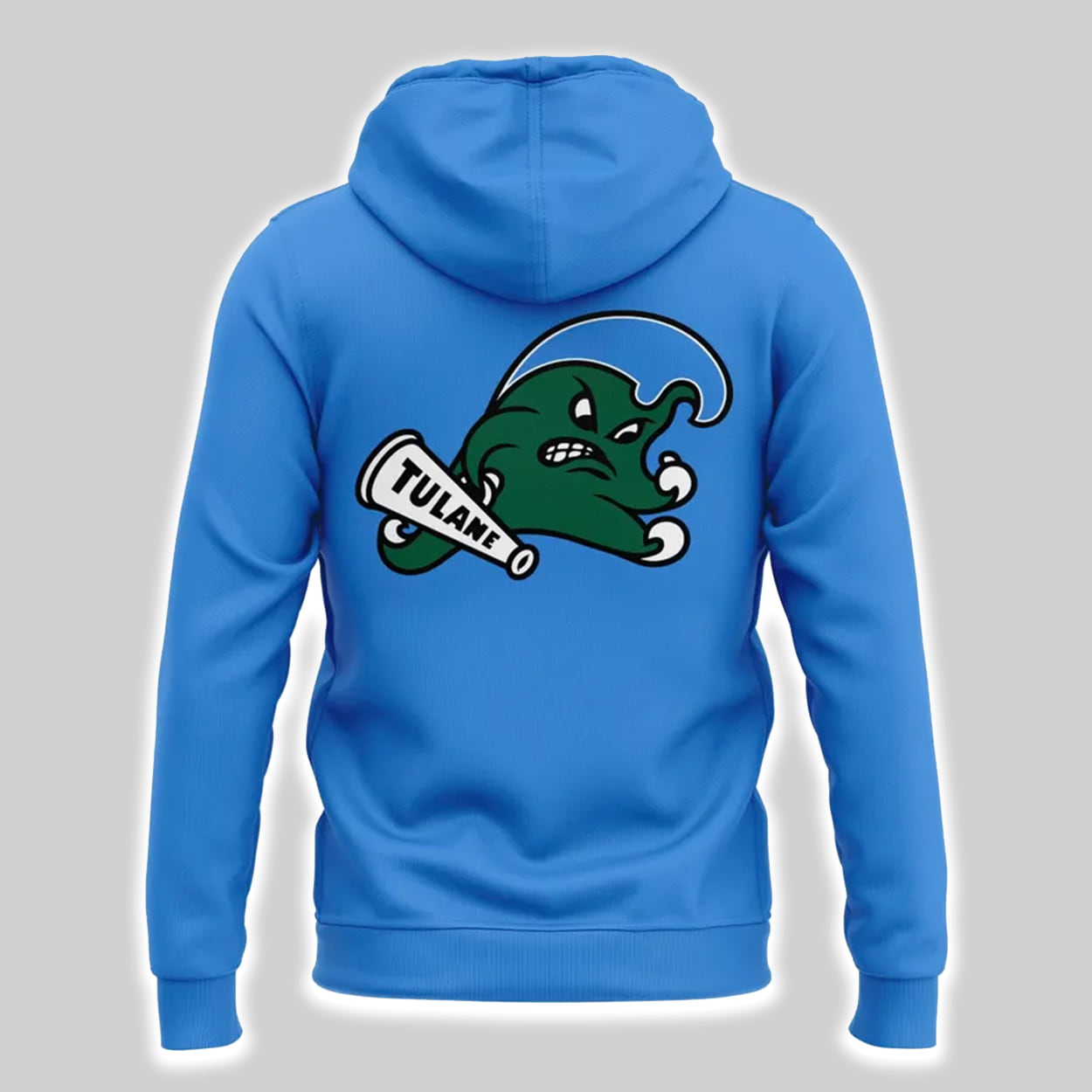This Tulane Coach Jon Sumrall RMFW Hoodie is the new uniform for the “Roll Wave” faithful. The front makes a bold, simple statement with Coach Jon Sumrall’s signature “RMFW” slogan in a tough, stenciled font, with a small “angry wave” mascot peeking out. The back of the hoodie features a large, classic “angry wave” mascot, holding a Tulane megaphone and ready for a fight. It’s a clean, powerful design that’s instantly recognizable.