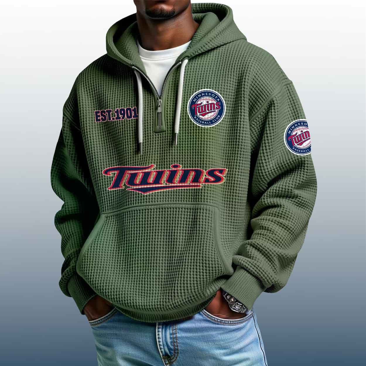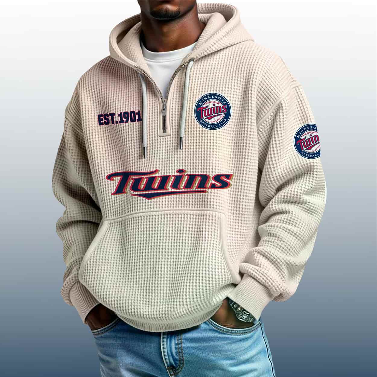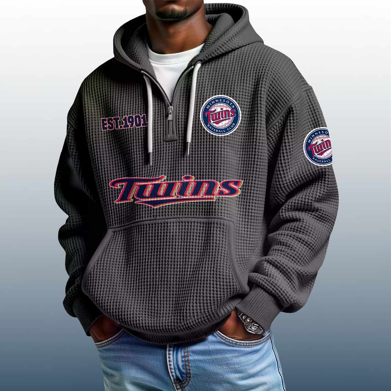 Swing Into Style: Twins Est 1901 Quarter Zip Waffle Hoodie Hits a Fashion Home Run