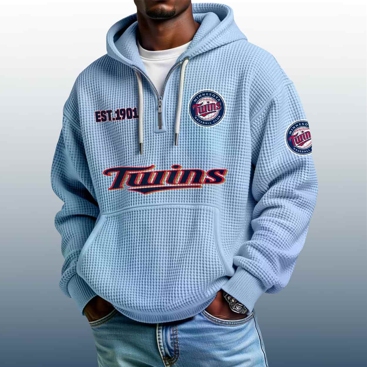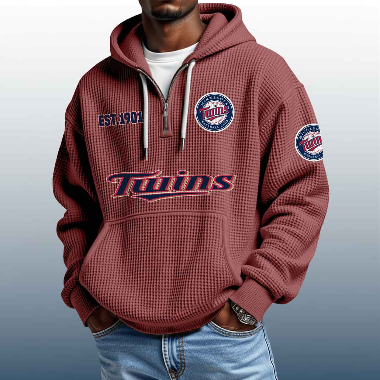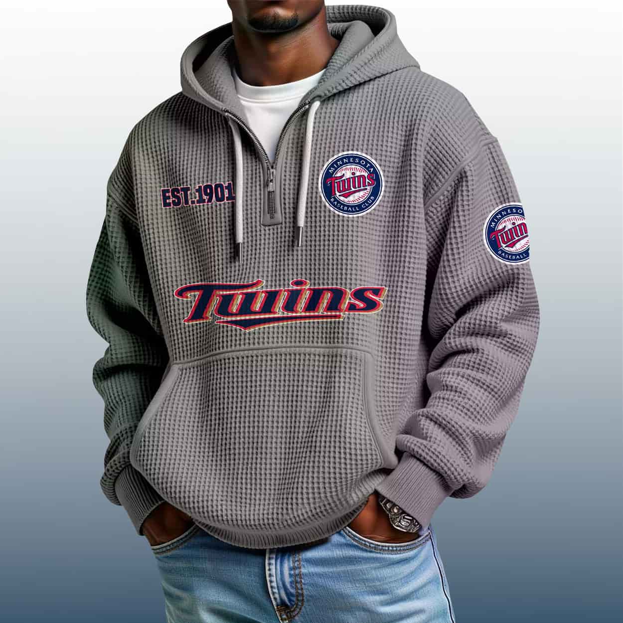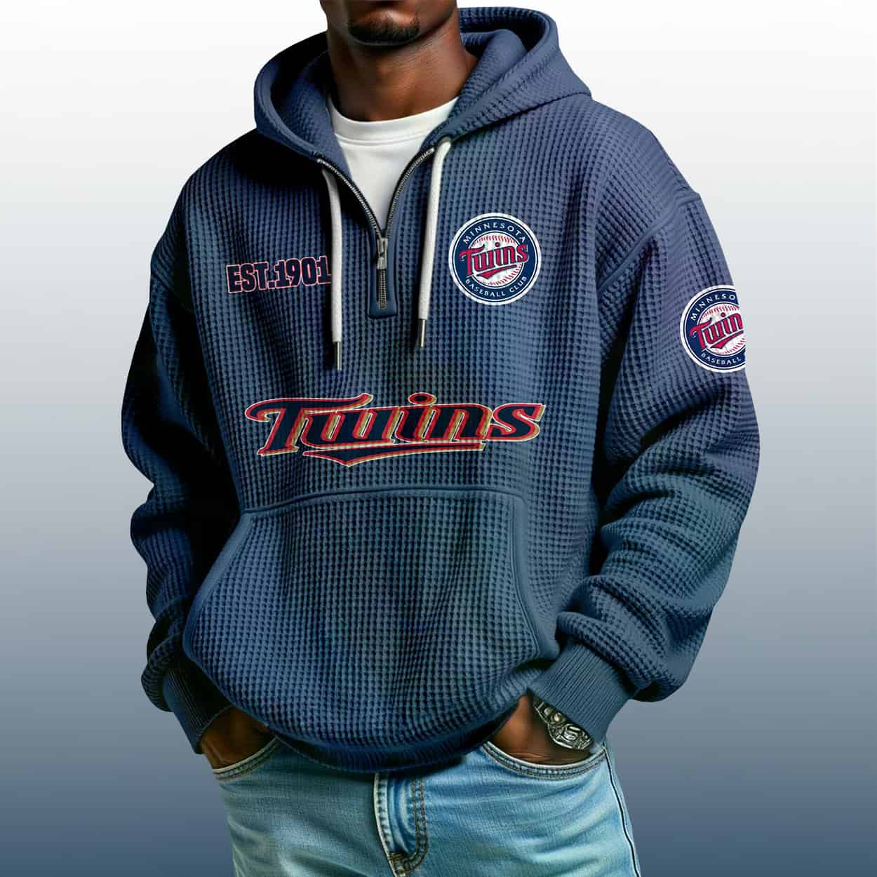 Swing Into Style: Twins Est 1901 Quarter Zip Waffle Hoodie Hits a Fashion Home Run