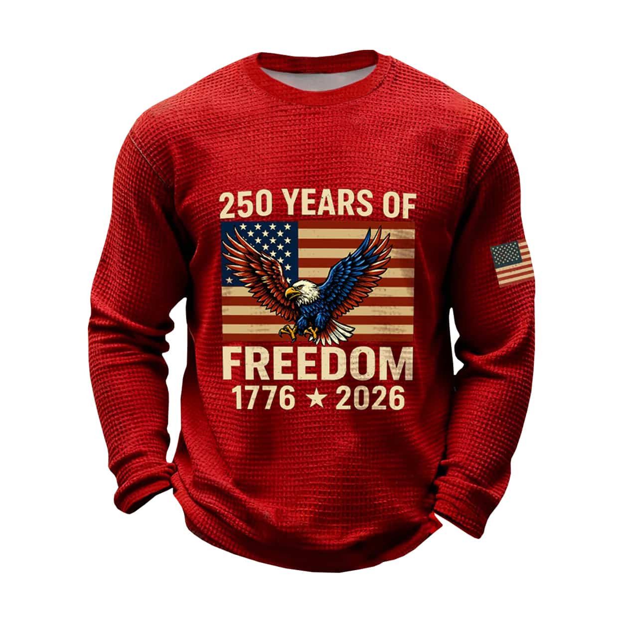 Ready to wear your patriotism with pride? Grab the United States 250 Years Of Freedom 1776 2026 Waffle Sweatshirt and let your outfit soar as high as your American spirit.