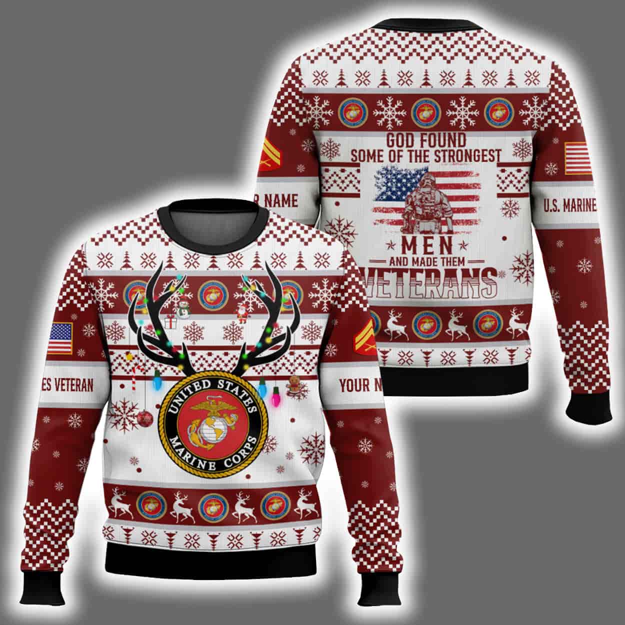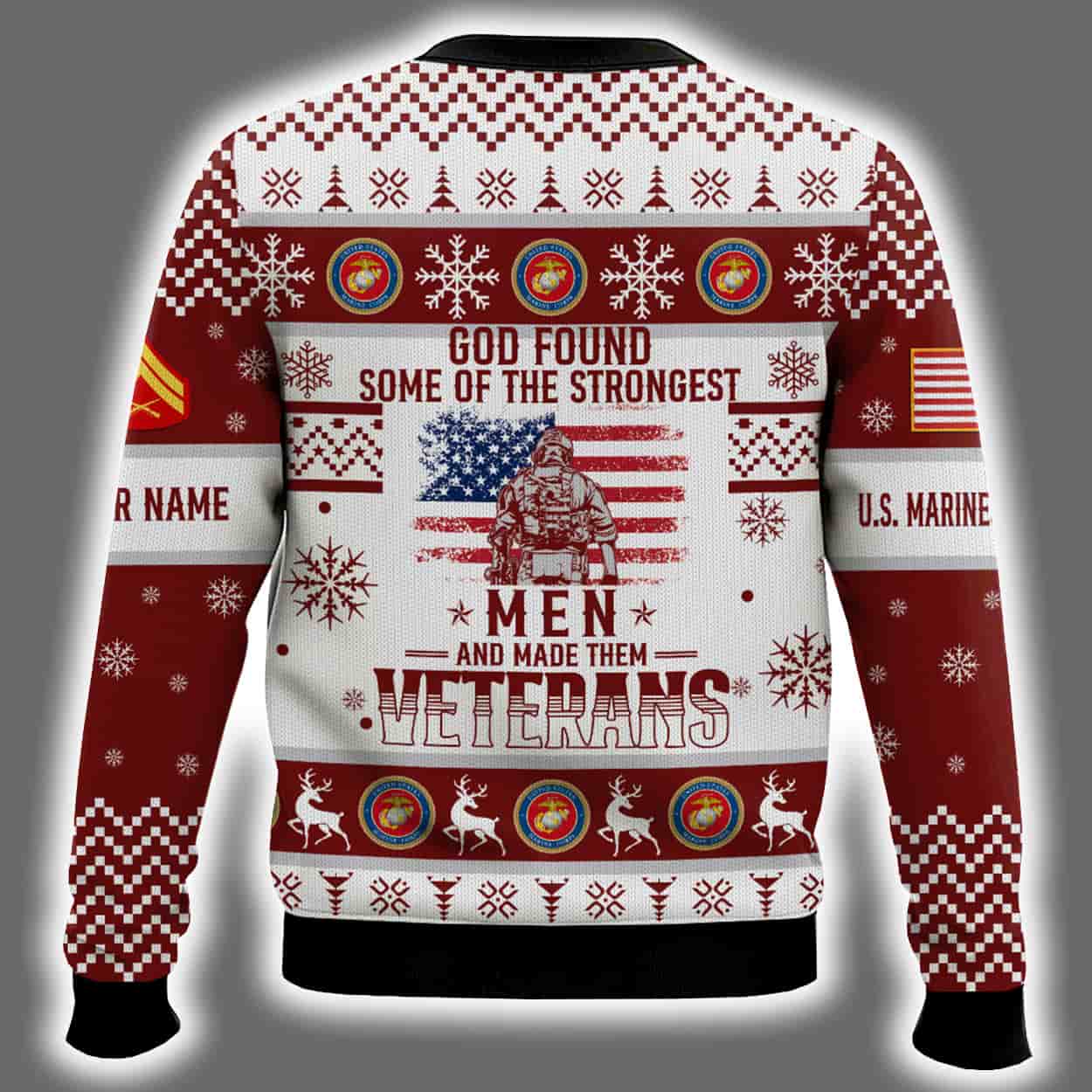 US Marine Corps God Found The Strongest Men And Made Them Veteran Ugly Christmas Sweater