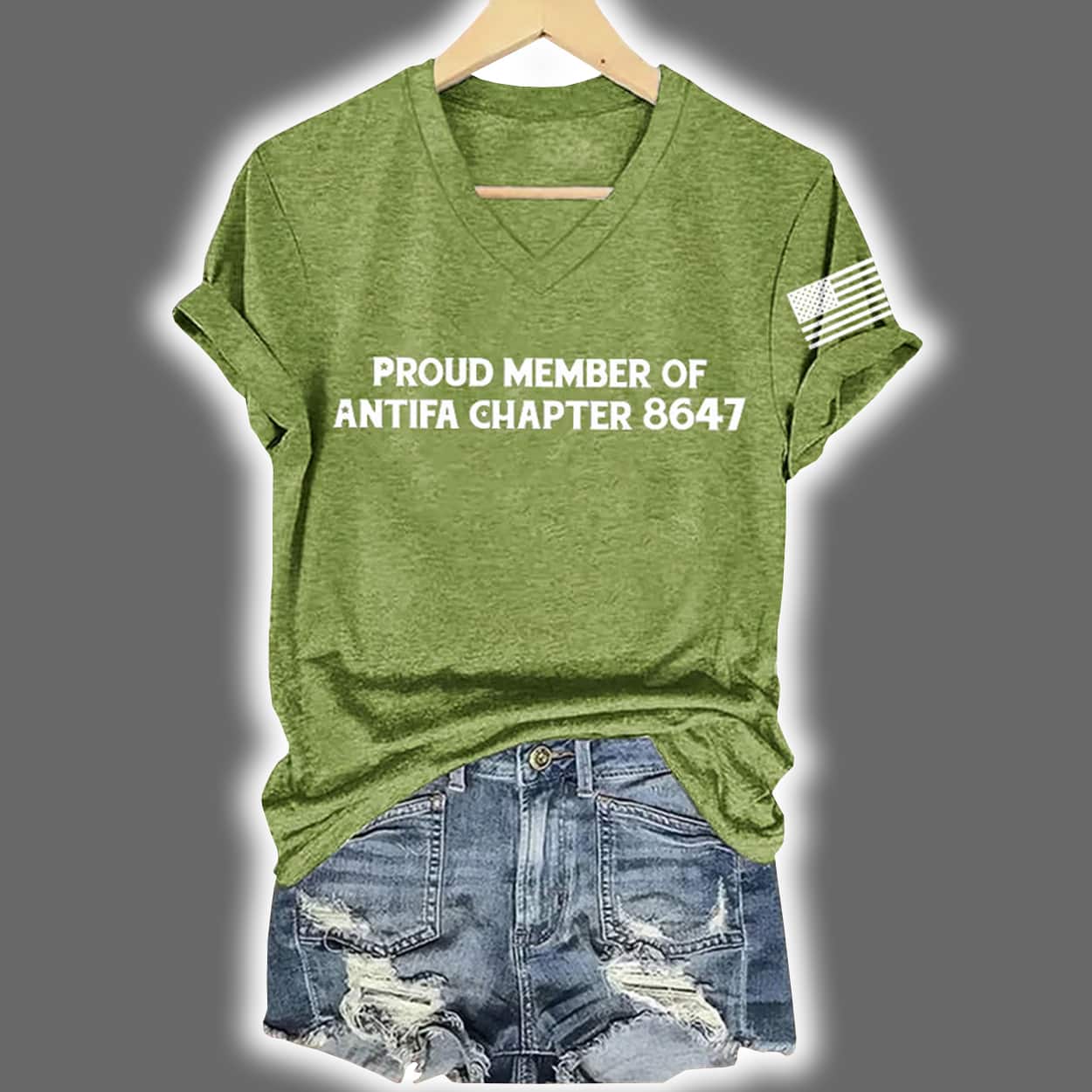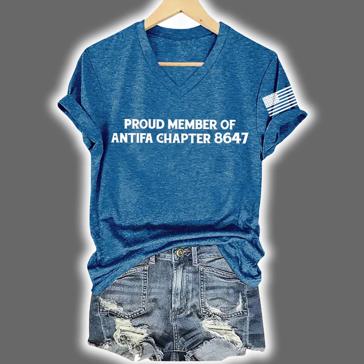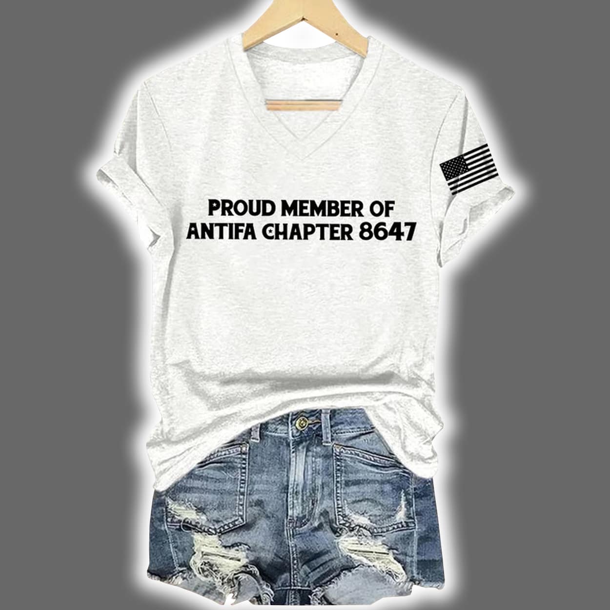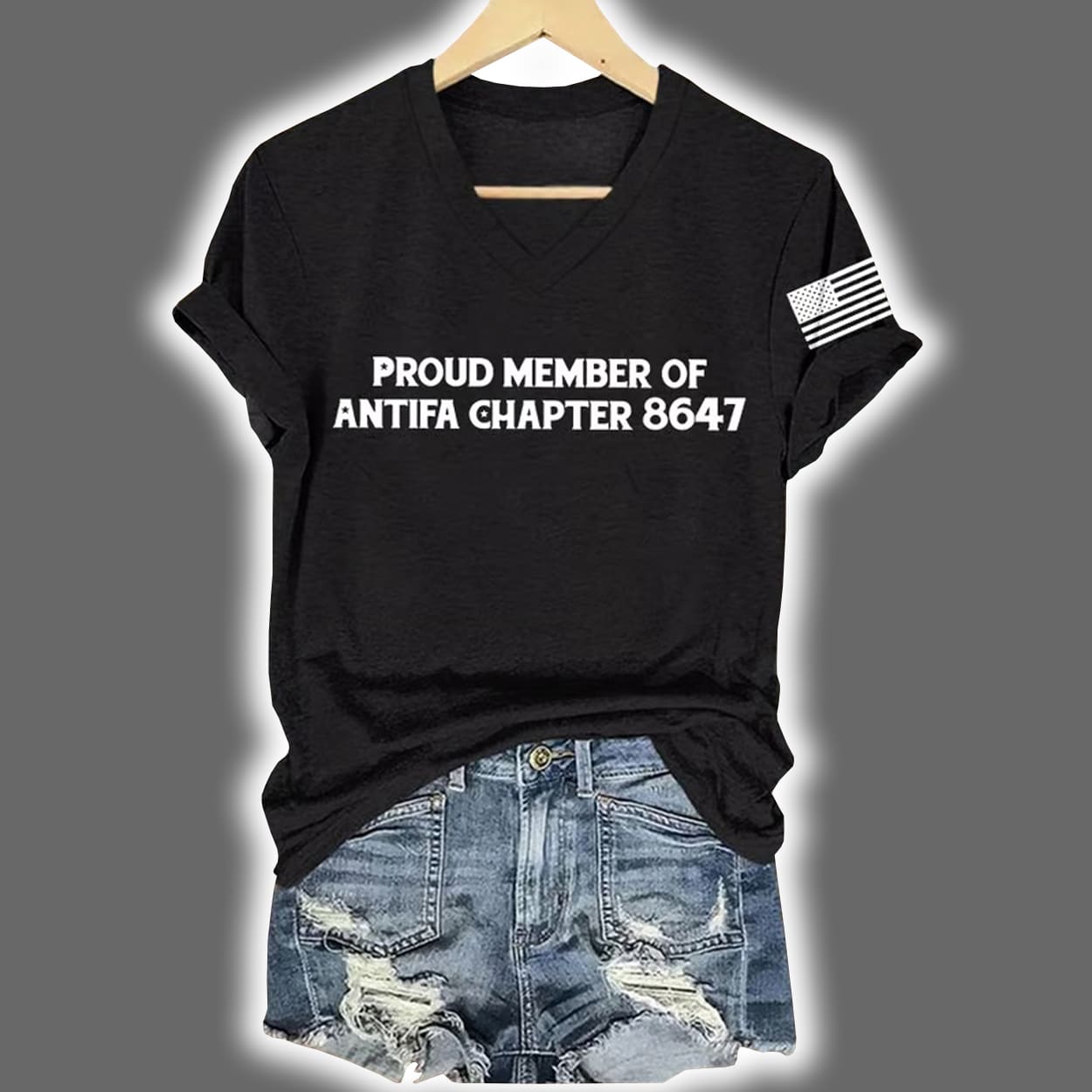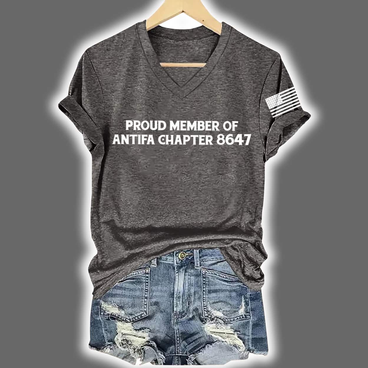 This shirt is designed for those who wear their convictions with confidence. In crisp white lettering across the chest, it declares: “PROUD MEMBER OF ANTIFA CHAPTER 8647”—a fictional chapter number that adds a layer of playful mystery. Whether you’re rallying or relaxing, this tee is a conversation starter that refuses to blend in.