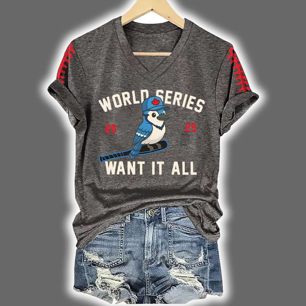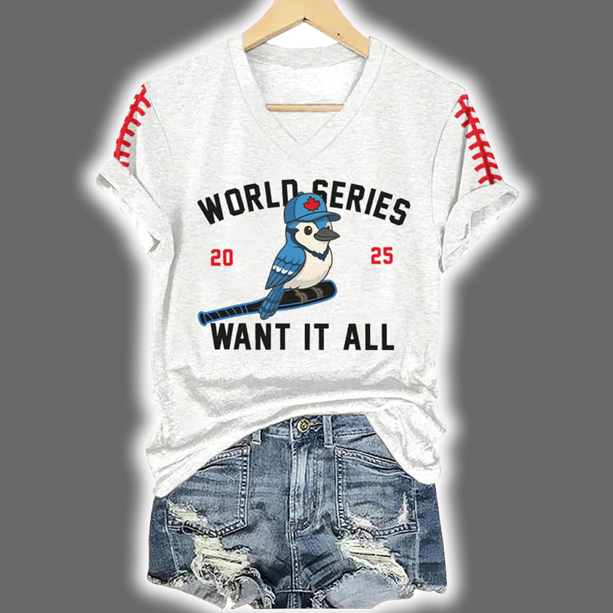Be the first to review “V-Neck Retro Toronto Baseball World Series 2025 Want It All Print T-Shirt” Cancel reply