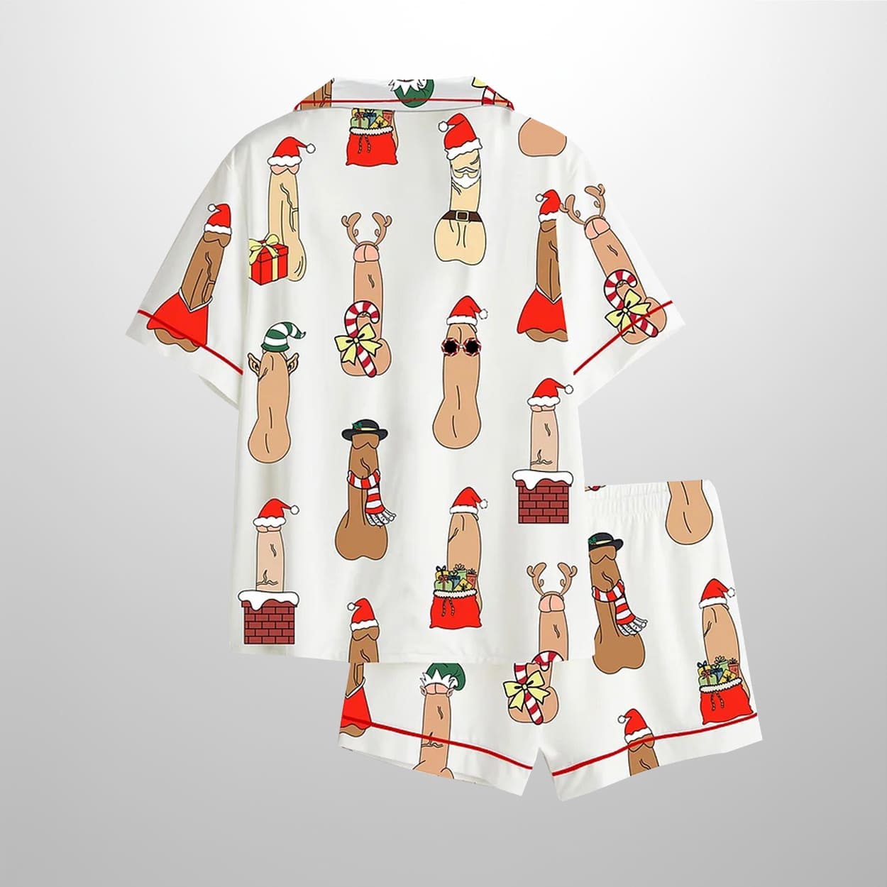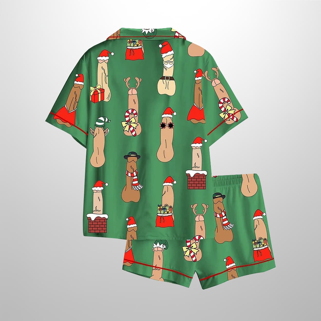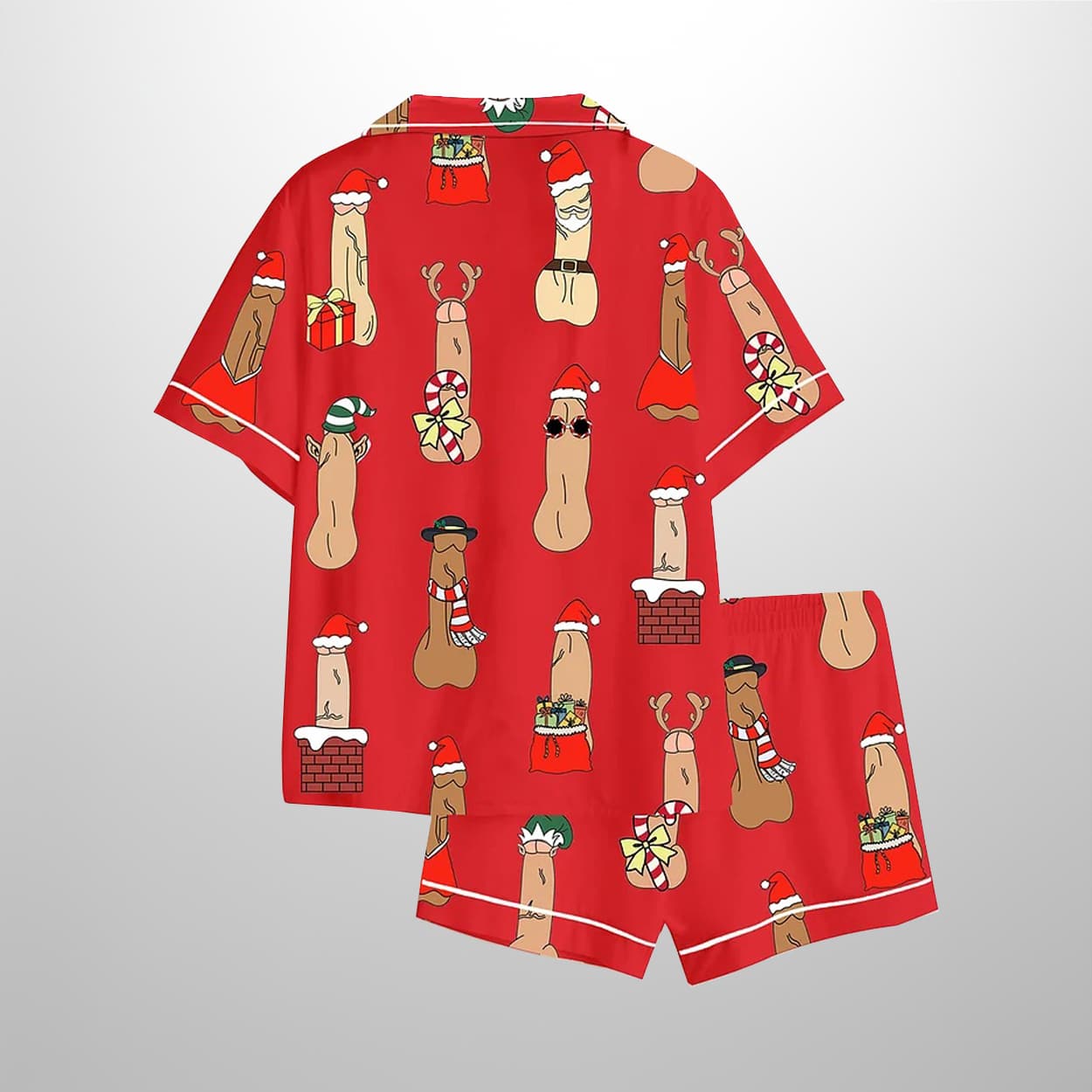 Unwrap the unexpected with the Vibes Inappropriate Peni Balls Funny Christmas Satin Pajama Set—where cheeky humor meets festive flair in a bold holiday look.