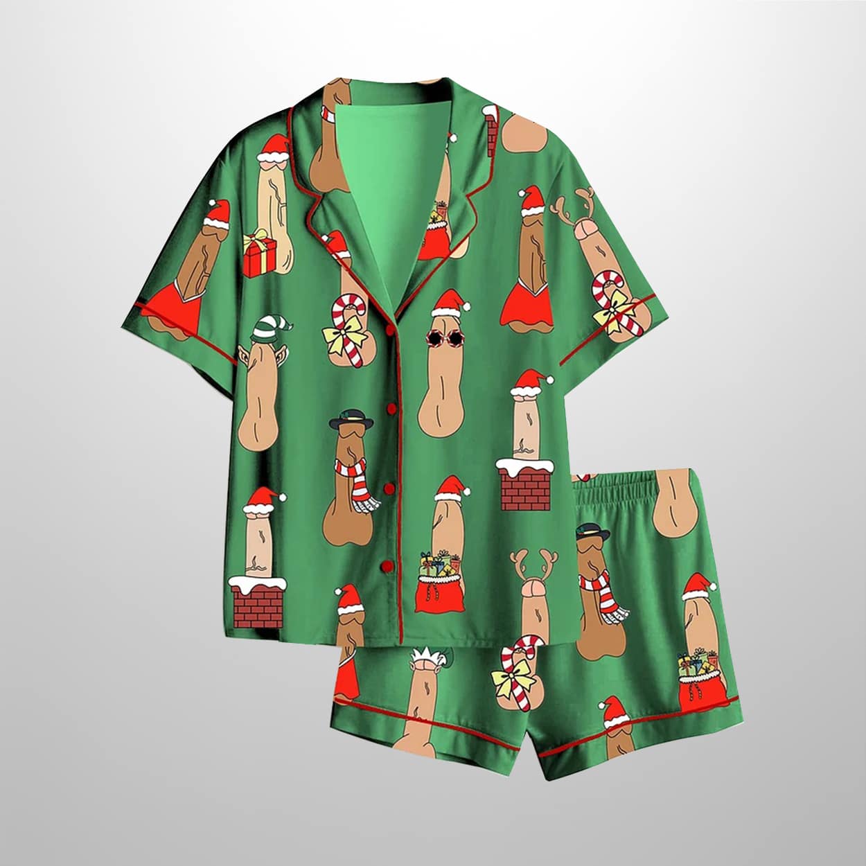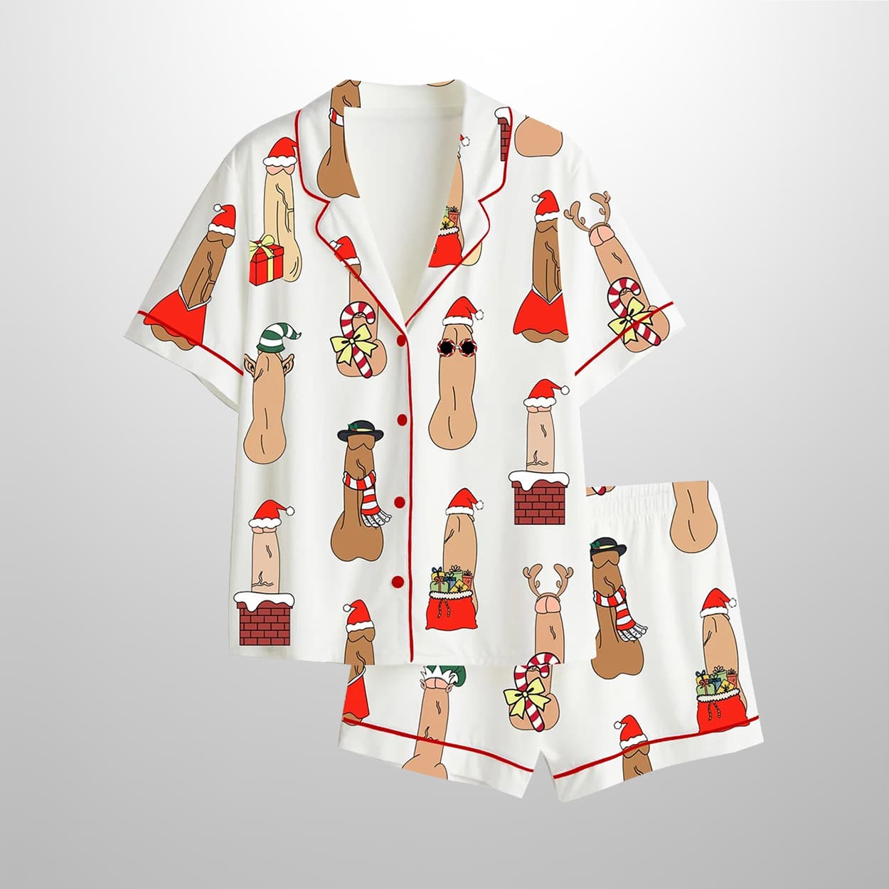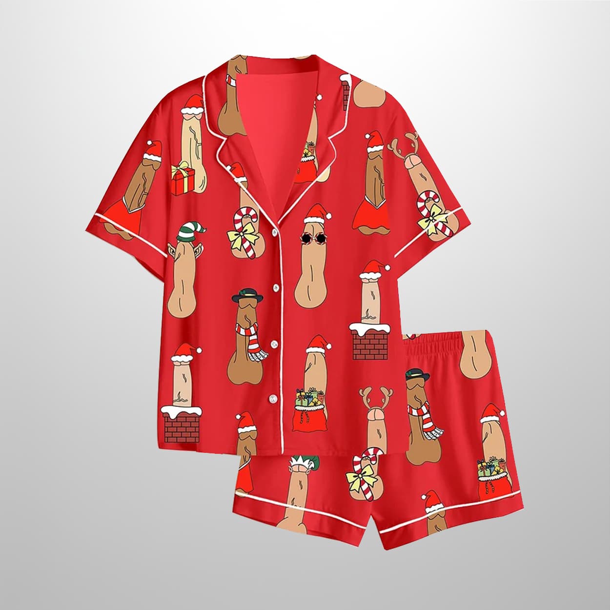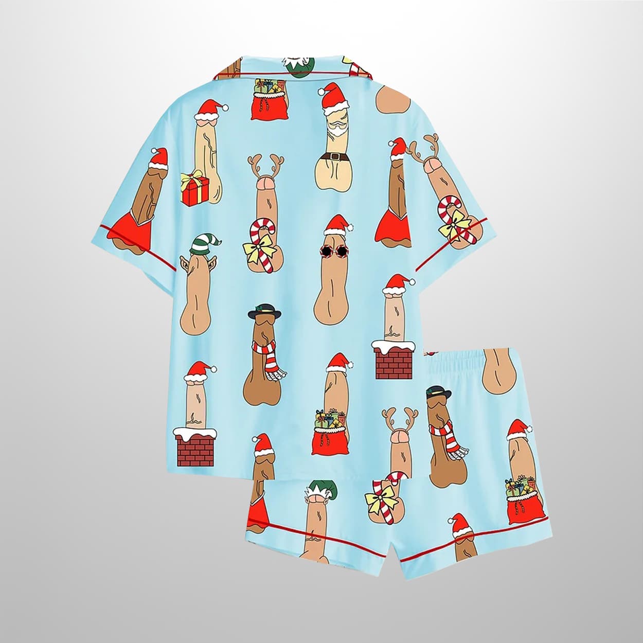 Unwrap the unexpected with the Vibes Inappropriate Peni Balls Funny Christmas Satin Pajama Set—where cheeky humor meets festive flair in a bold holiday look.