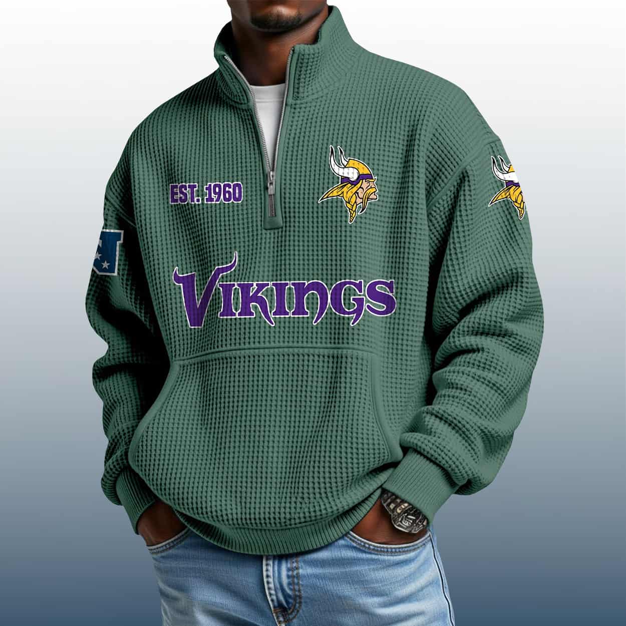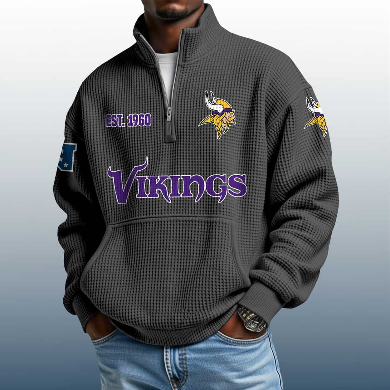 Legendary Style, Born in 1960: The Vikings Est 1960 Stand Collar Half Zip Waffle Sweatshirt That Roars