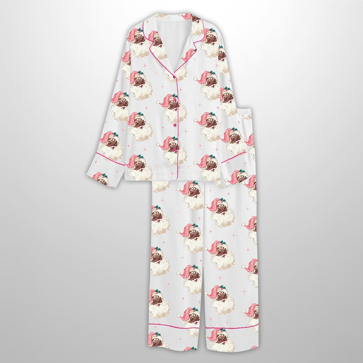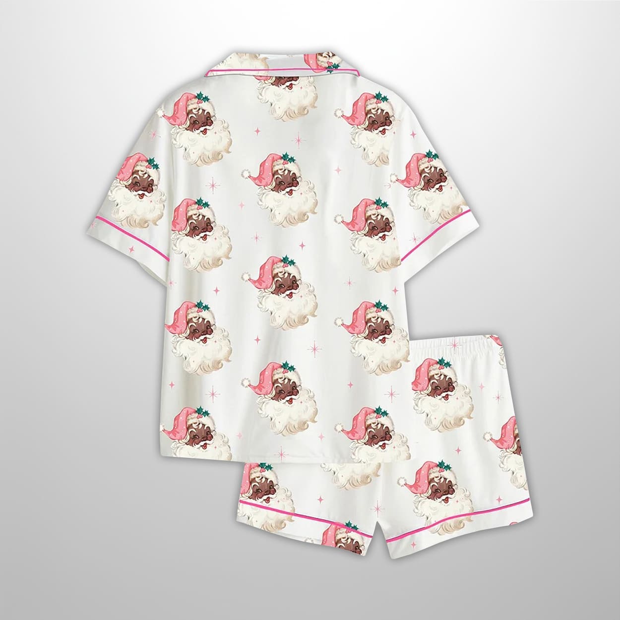 Celebrate the season with flair in the Vintage Pink African American Black Santa Satin Pajama Set—where festive charm meets cultural pride in a cozy, playful design.