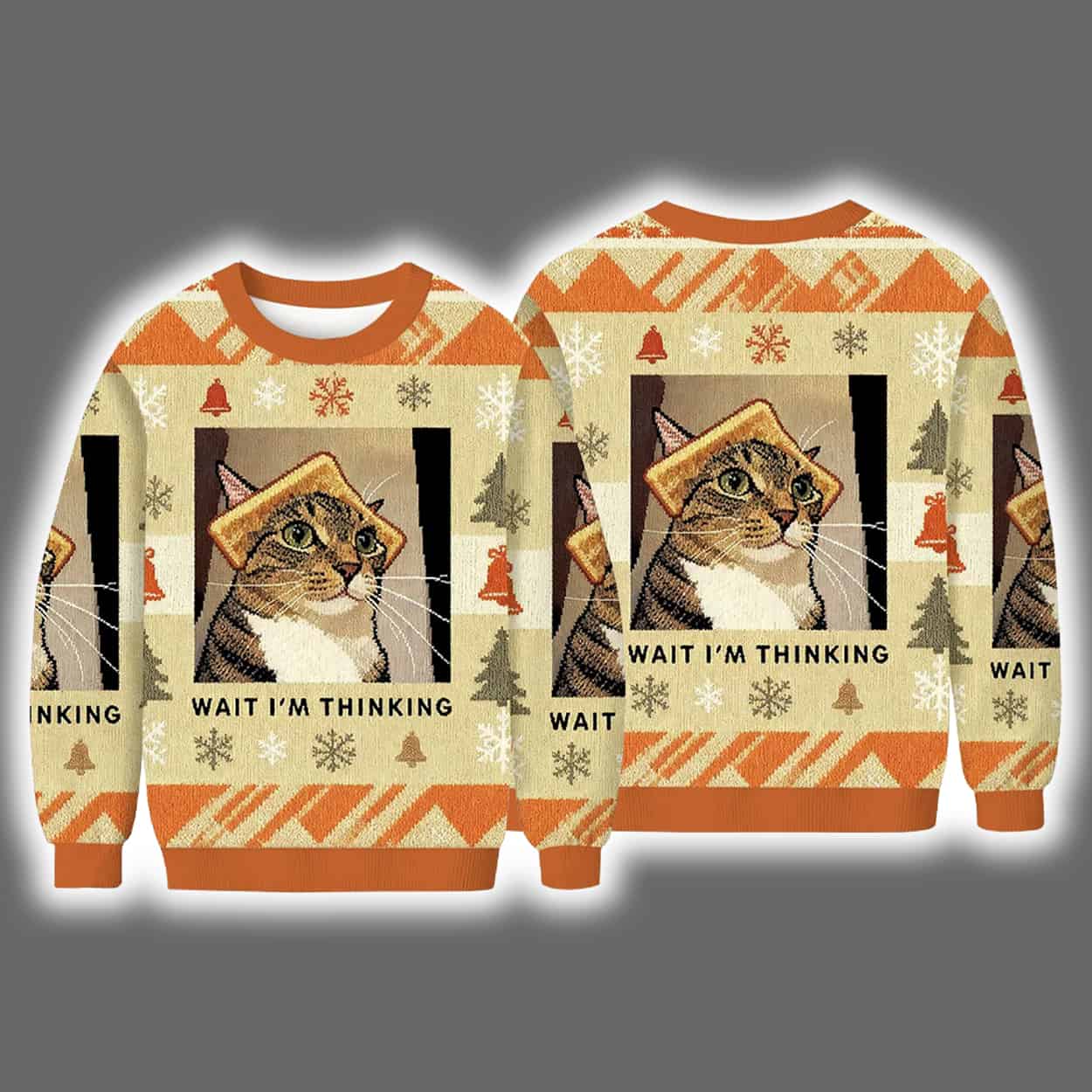Wait I’m Thinking Cat Meme Ugly Christmas Sweater