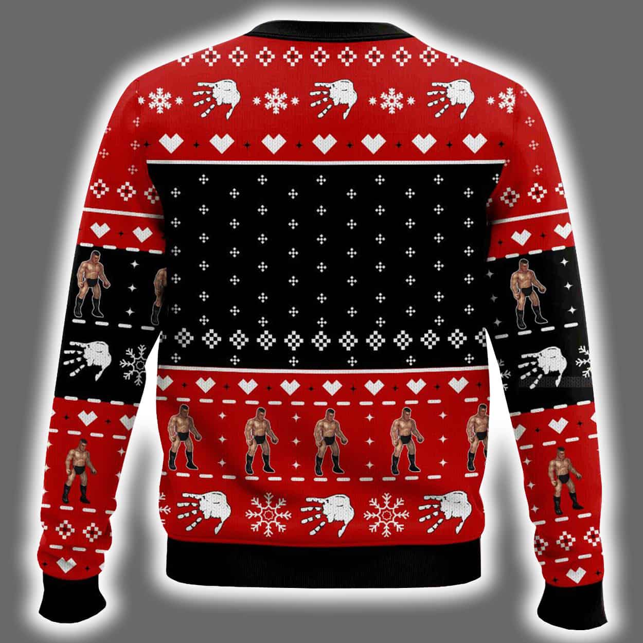This sweater is a tribute to the powerhouse persona of Walter Hahn, known to fans as Gunther. It channels his intensity and charisma into a playful holiday format, blending traditional motifs with the commanding presence of a wrestling icon. It’s designed for fans who embrace boldness, celebrate strength, and aren’t afraid to bring a little ring energy to the mistletoe.