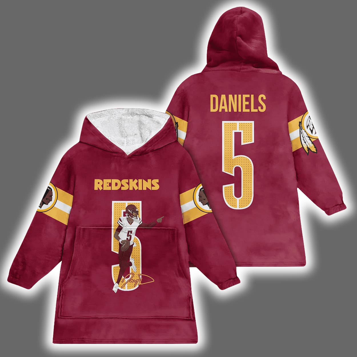 Command the Cold: Washington Football Jayden Daniels 5 Signature Unisex Blanket Hoodie for Washington Fans