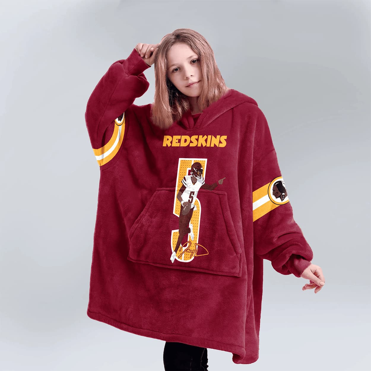 Washington Football Jayden Daniels 5 Signature Unisex Blanket Hoodie