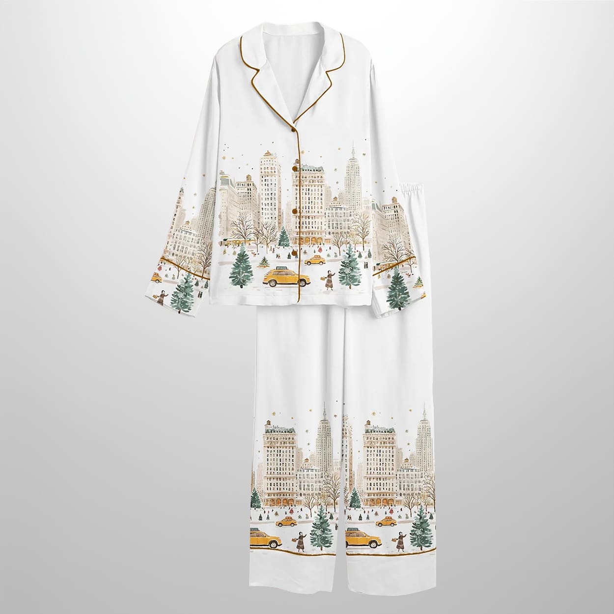 Snowflakes & Skylines: The Watercolor Christmas In New York Winter Snowy Satin Pajama Set