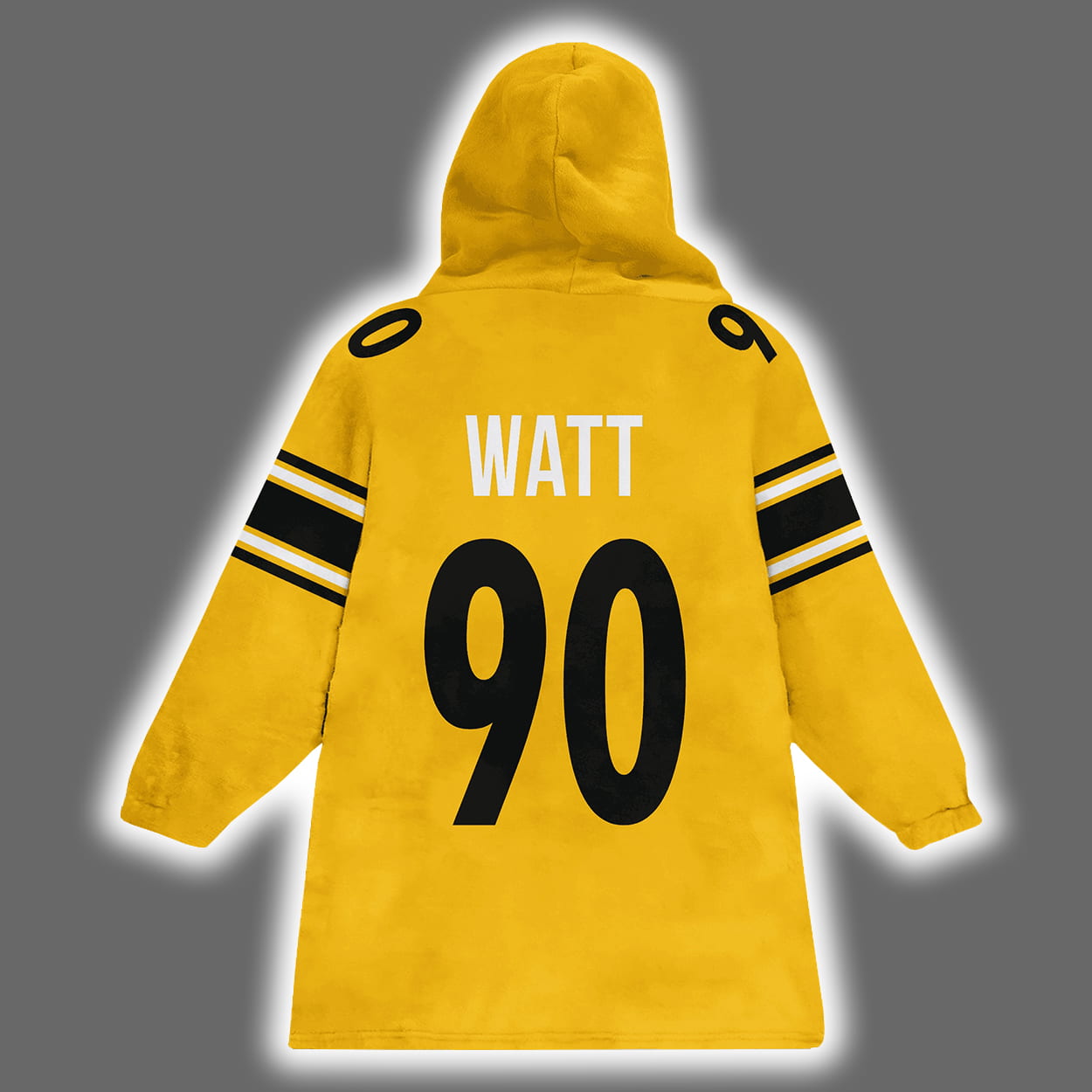 Wrap yourself in Pittsburgh pride with the Watt 90 Pittsburgh Football The Terrible Blanket Hoodie — a bold fusion of football fandom and cozy comfort, designed for those who live loud and lounge louder.
