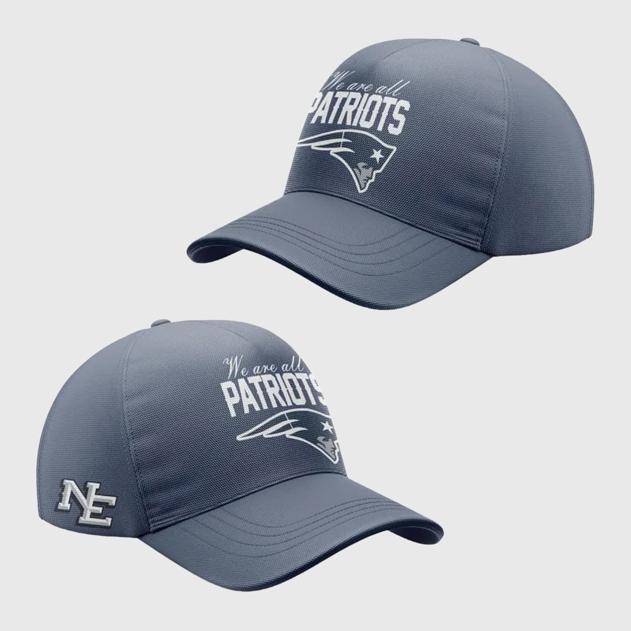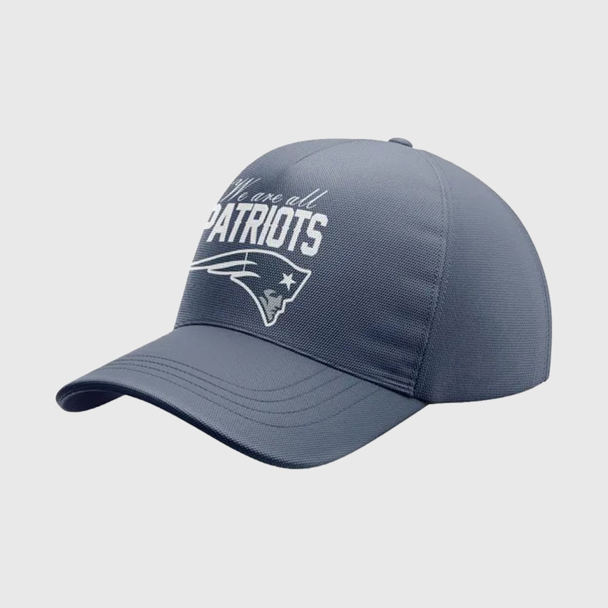 Crafted in a moody storm blue, this cap features bold white print that reads “We Are All PATRIOTS”—a phrase that sounds like a rallying cry but feels more like a cheeky nod to the chaos of modern fandom. The stylized Patriot head logo adds a dash of vintage rebellion, while the side “NE” initials wink at New England roots without shouting. The structured fit and curved brim keep your shade game strong, whether you’re tailgating or tactfully avoiding small talk.