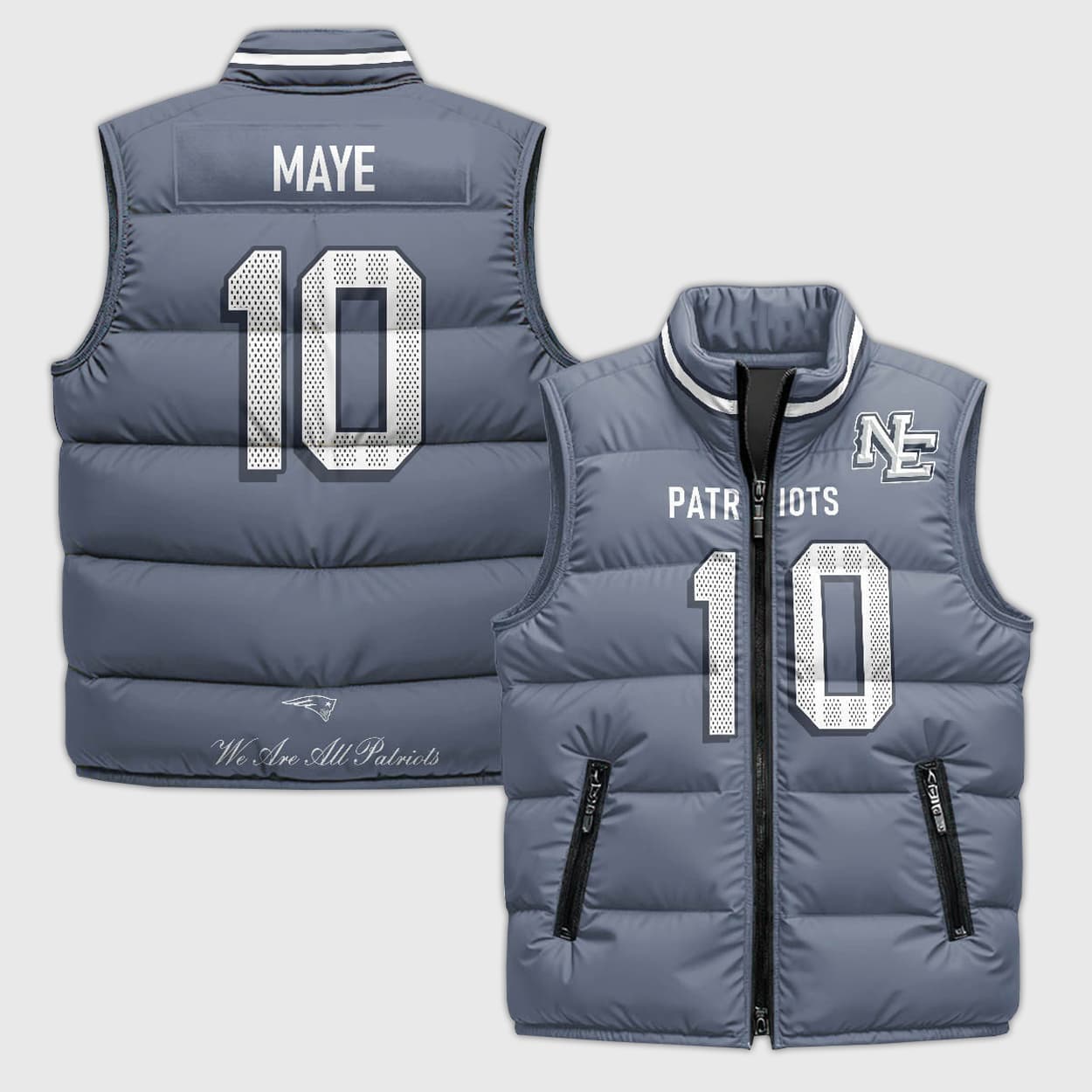 We Are All Patriots Rivalry 2025 Drake Maye 10 Puffer Vest