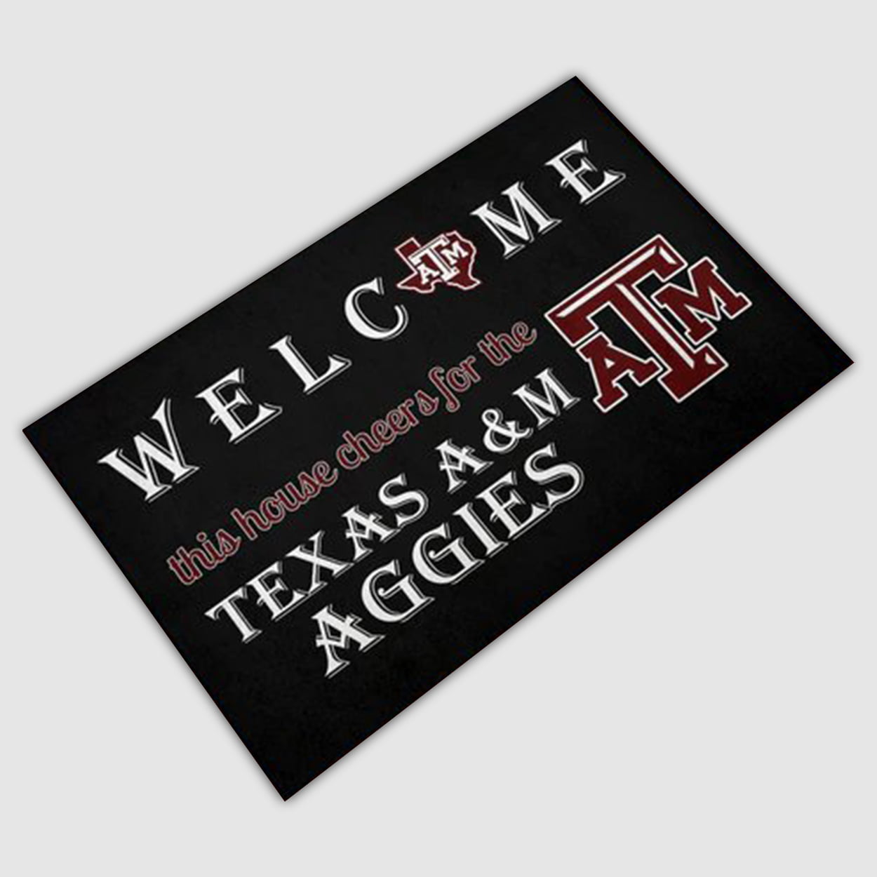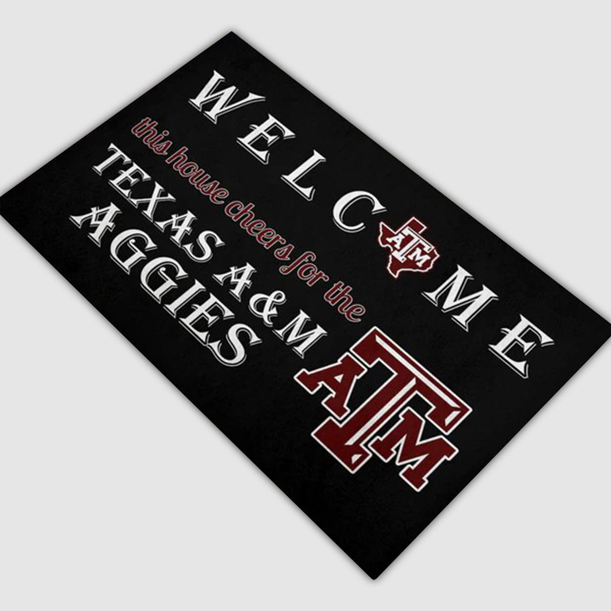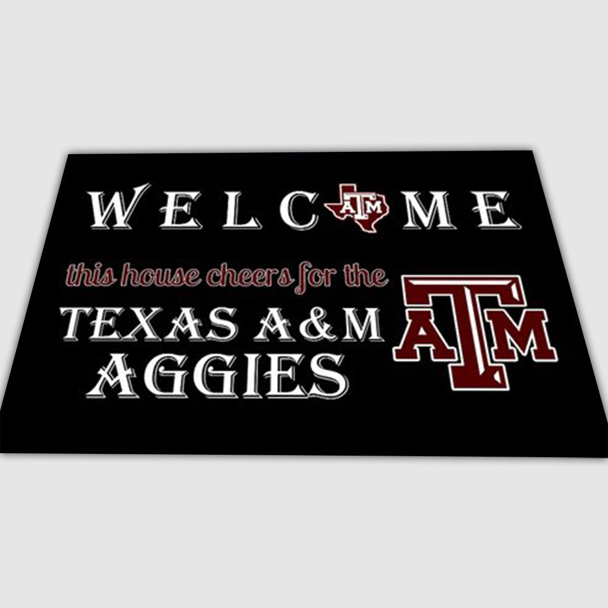 Make your entrance unforgettable. Grab the Welcome This House Cheers For The Aggies Doormat today and let every visitor know — this home stands with Texas A&M!