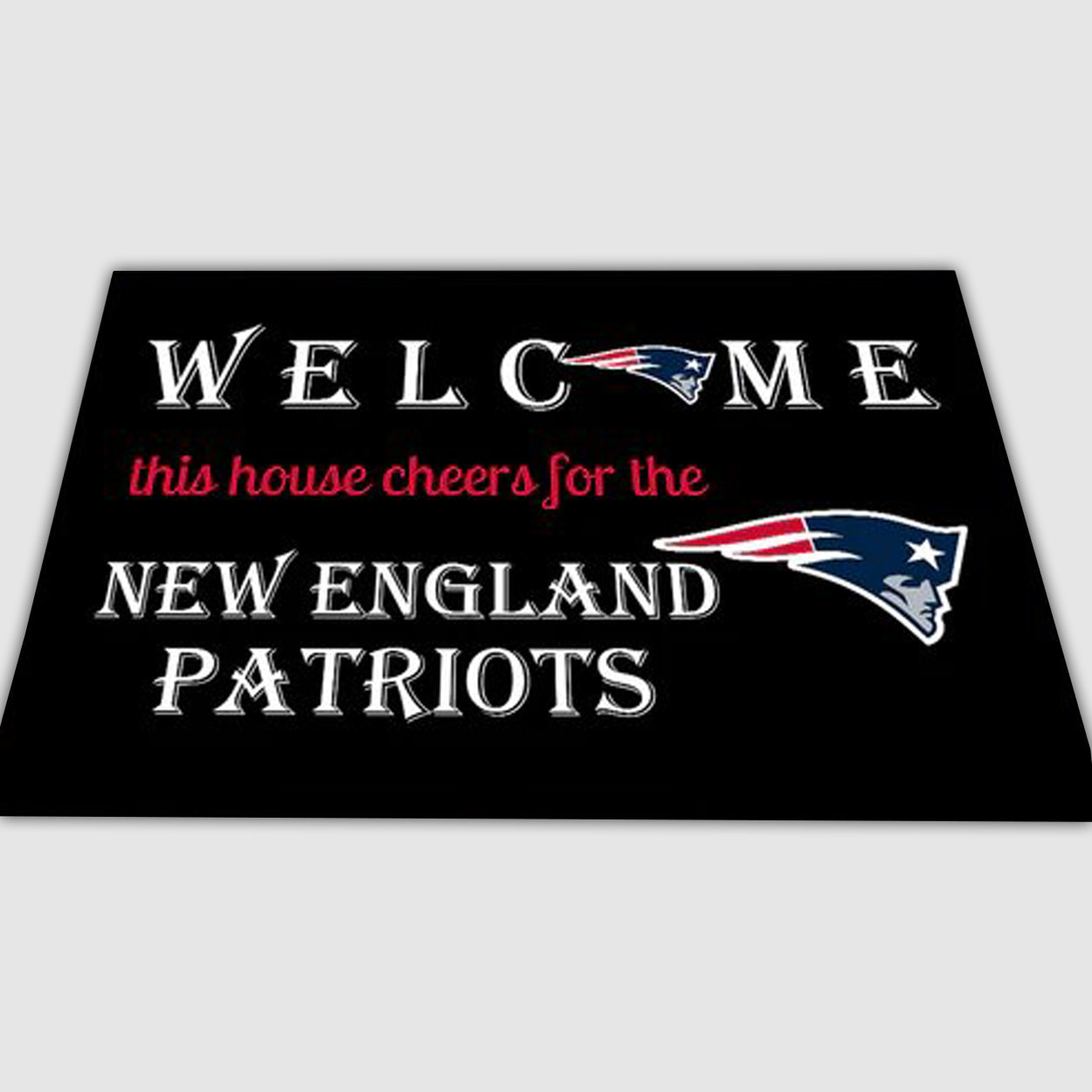 Show off your New England pride with this Welcome This House Cheers For The Patriots Doormat — a spirited salute to football fandom and home-field loyalty.
