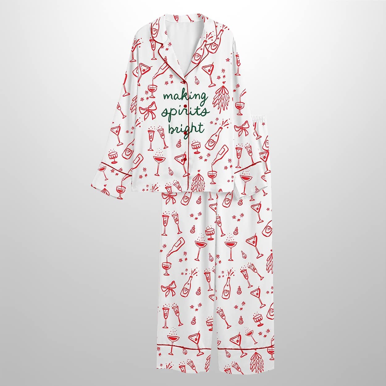 Making Spirits Bright: The Whimsical Christmas Wine Holiday Party Making Spirits Bright Satin Pajama Set