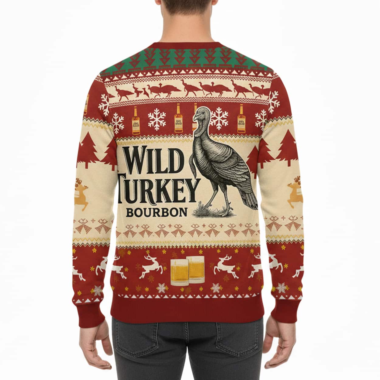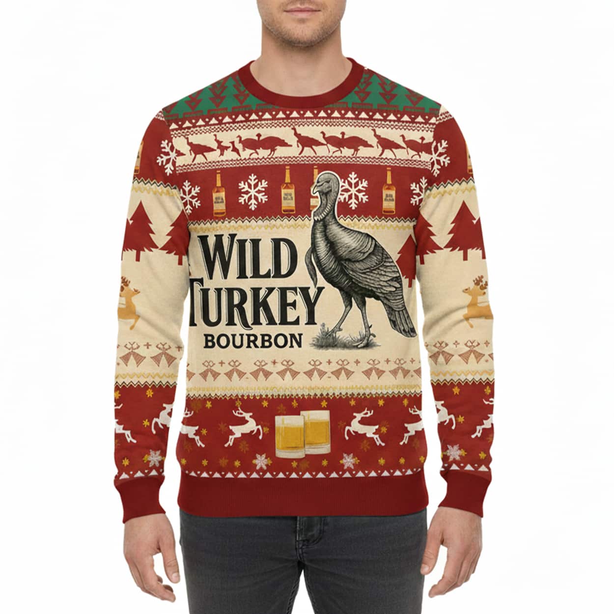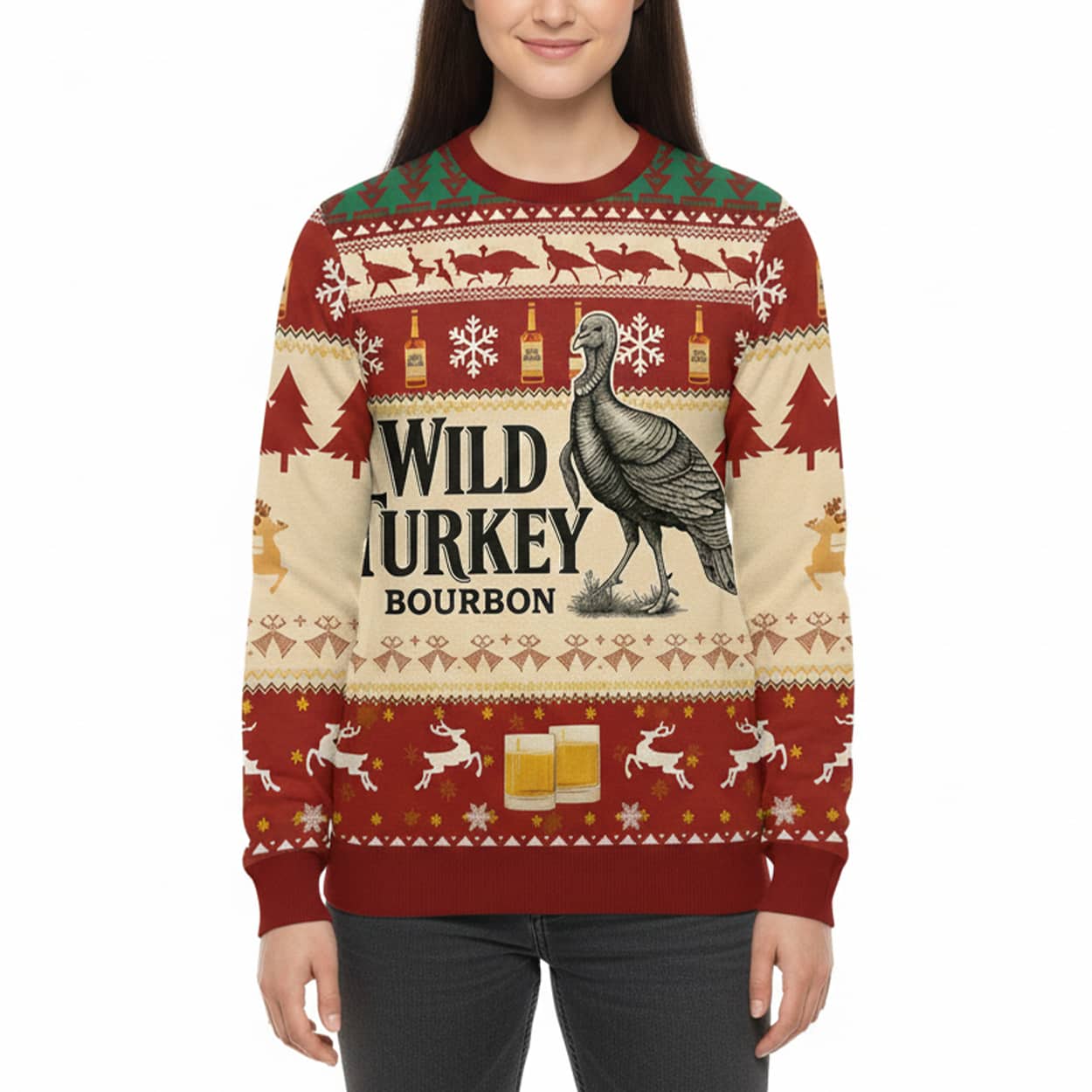 Spice up your holiday wardrobe with the Wild Turkey Bourbon Whiskey Ugly Christmas Sweater—where festive meets flavorful in bold, boozy style.