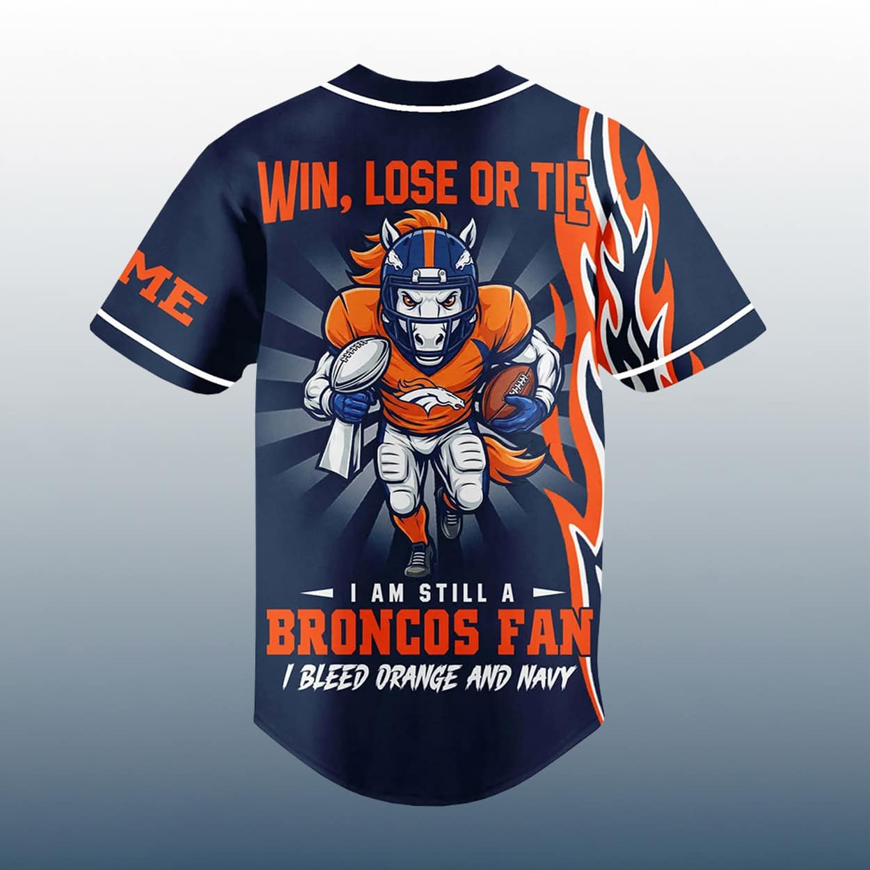 Unleash Your Inner Bronco with This Win Lose Or Tie I Am Still A Broncos Fan Jersey!