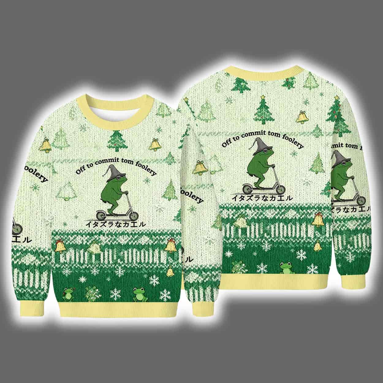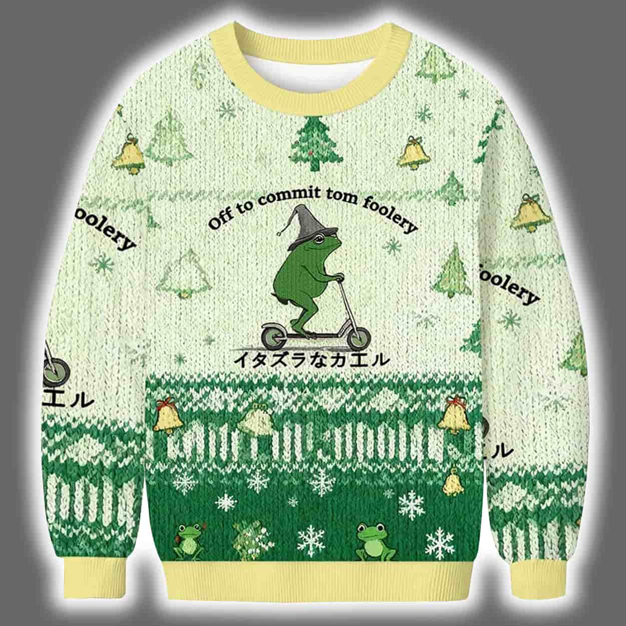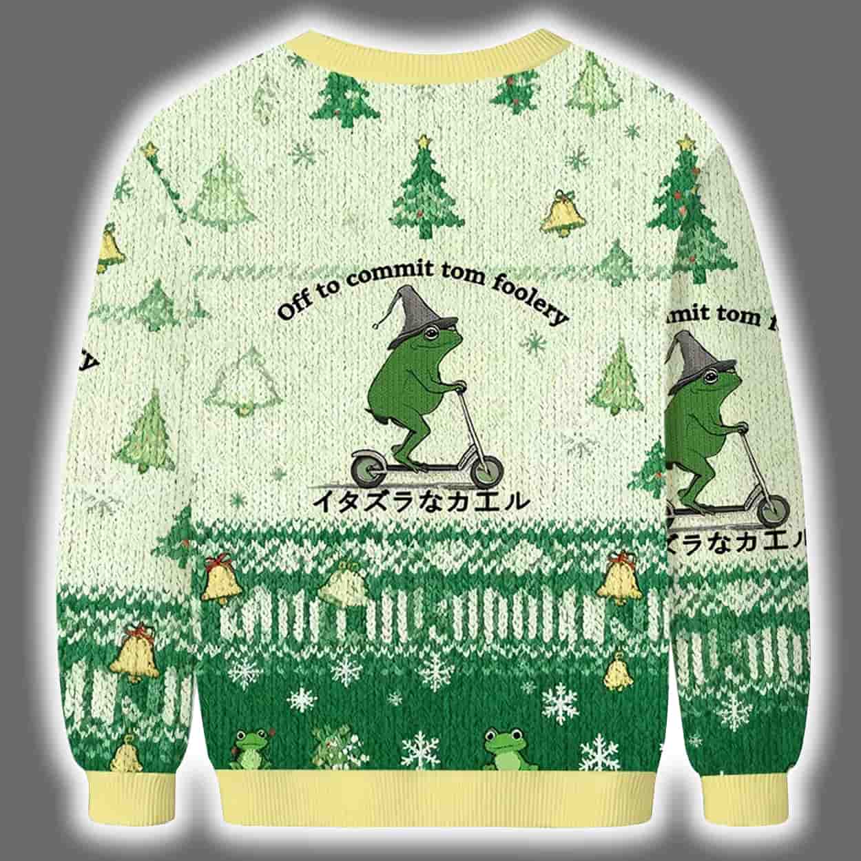 Witch Frog Off To Commit Tom Foolery Ugly Christmas Sweater