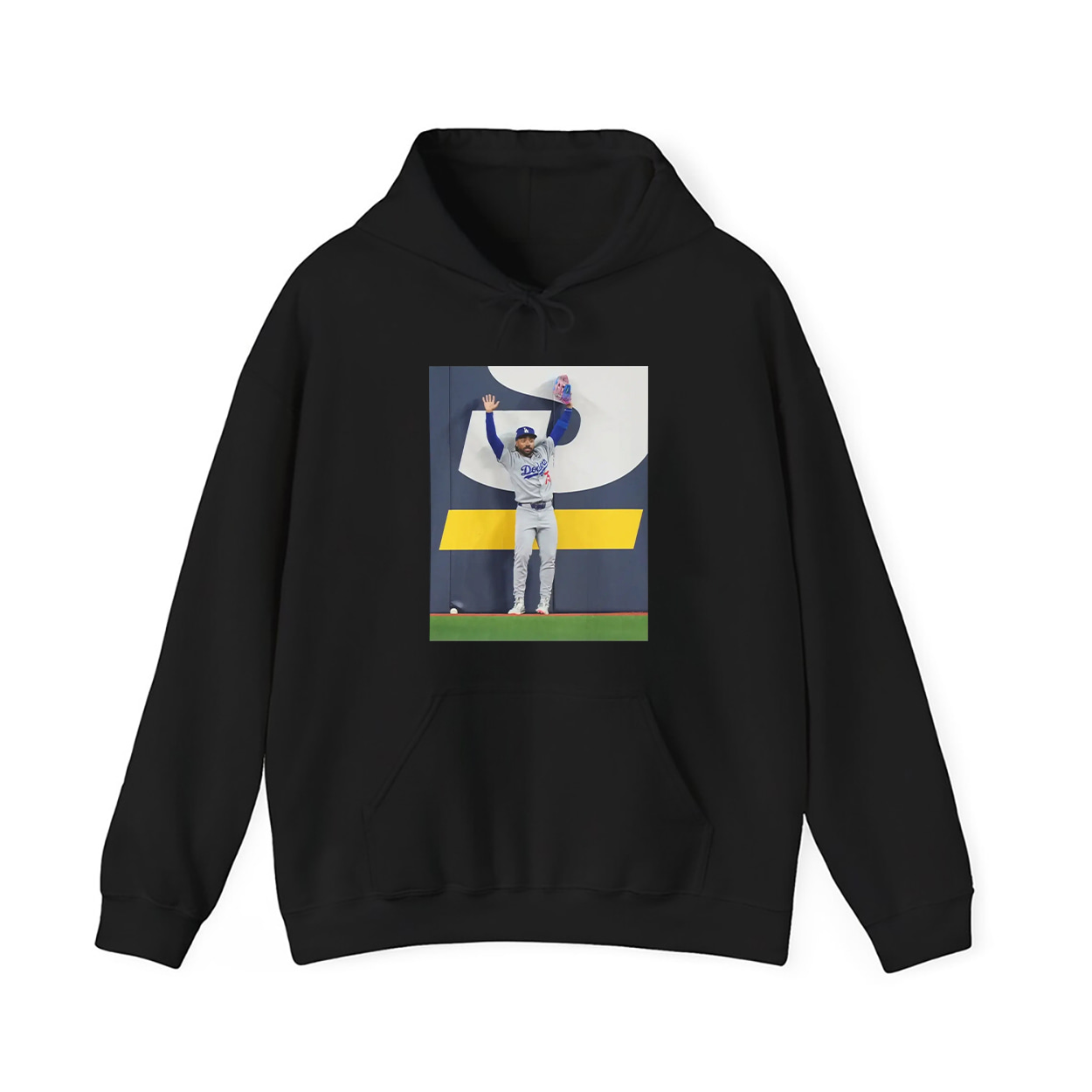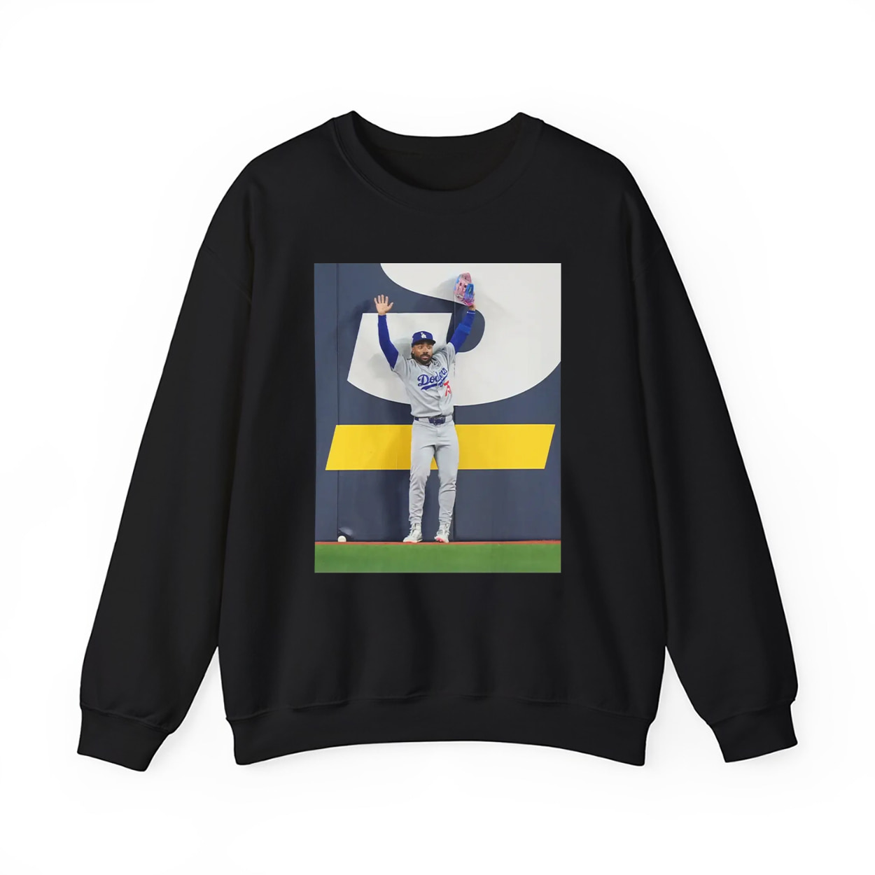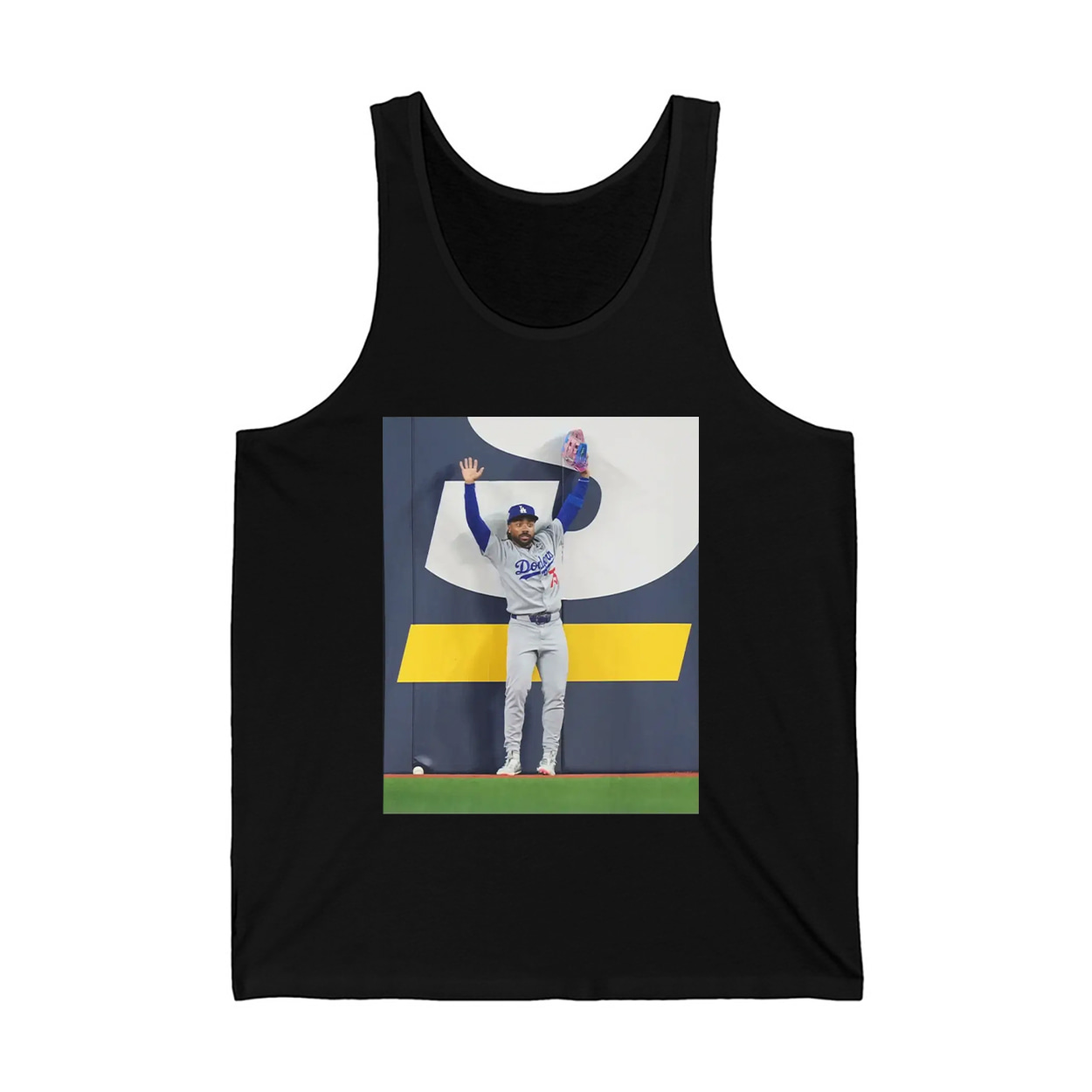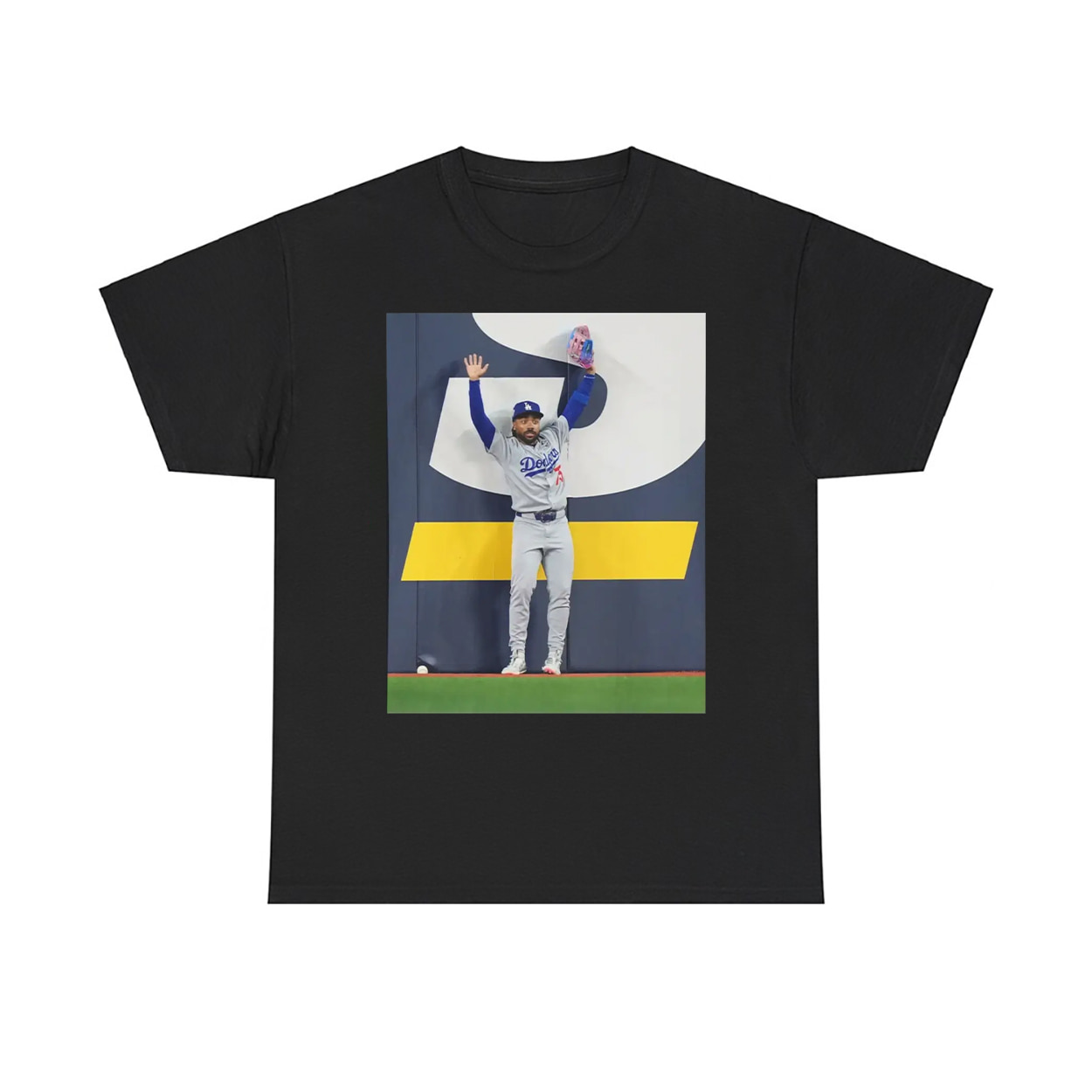 Inspired by the jaw-dropping play that halted the Blue Jays’ ninth-inning rally, this shirt is for fans who appreciate the unpredictable beauty of baseball. It’s a wearable wink to the rule that turned a sure run into a forced stop, and a reminder that sometimes, the fence has the final say. Whether you’re a Dodgers diehard, a Jays heartbroken loyalist, or just someone who loves a good sports story, this shirt speaks your language.