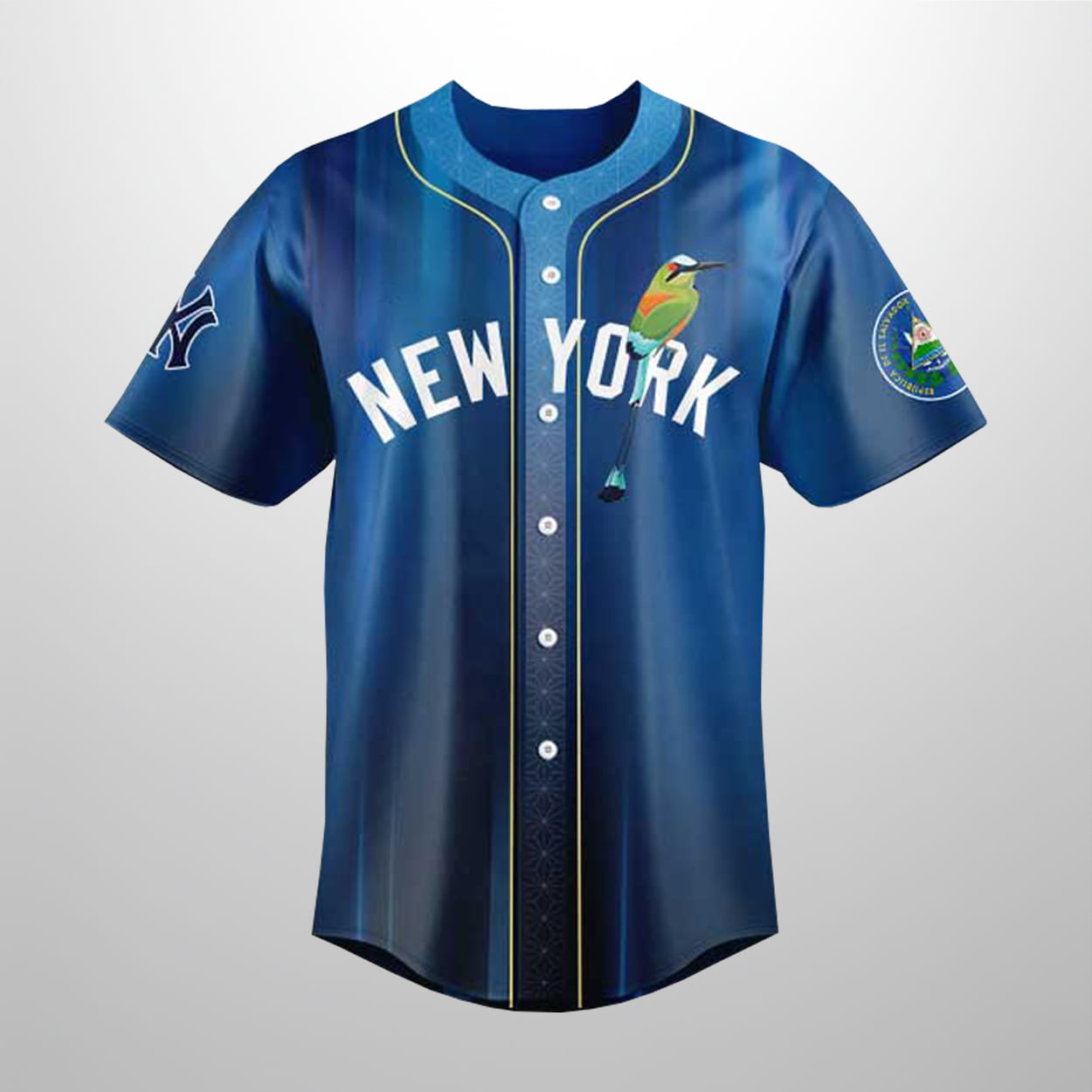 Empire State pride meets Salvadoran soul! Discover the Yankees Salvadoran Heritage Day 2026 Jersey, featuring the national Torogoz bird and the iconic Divino Salvador monument.