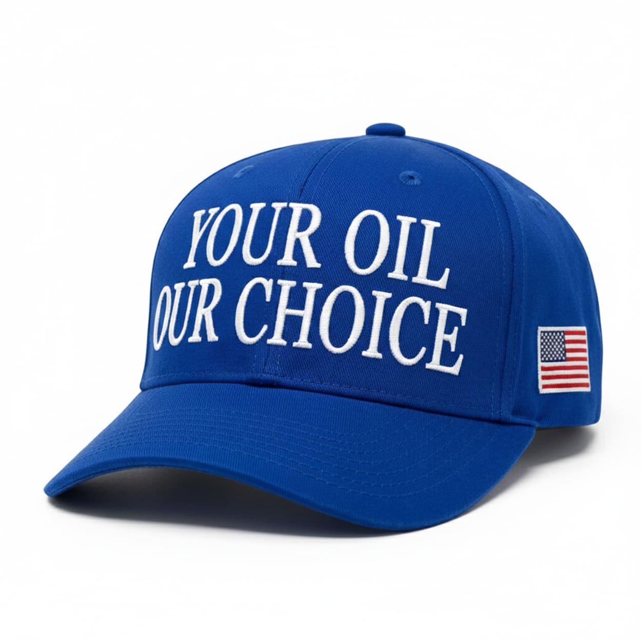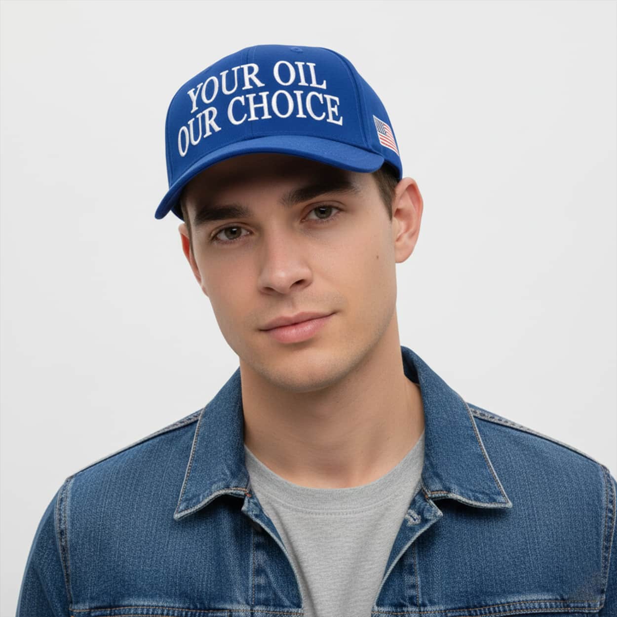 The phrase “Your Oil Our Choice” flips the script on power and policy, inviting playful interpretation while nudging at deeper geopolitical themes. It’s satire with swagger—a nod to energy debates, international influence, and the art of saying a lot with very few words. The juxtaposition of patriotic imagery with assertive text makes this hat a favorite among those who enjoy stirring the pot with style.