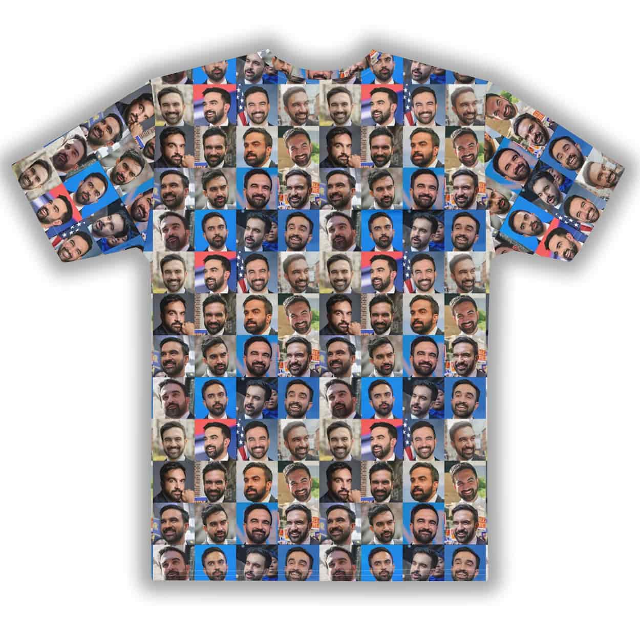 Step into the spotlight with this shirt — a wearable mosaic of personality and purpose. This eye-catching tee features a grid of vibrant headshots of Zohran Mamdani, each showcasing a different mood, hairstyle, and accessory. From serious stares to playful smirks, every square tells a story. The colorful backgrounds and expressive poses make this shirt a walking gallery of progressive energy and unapologetic individuality.