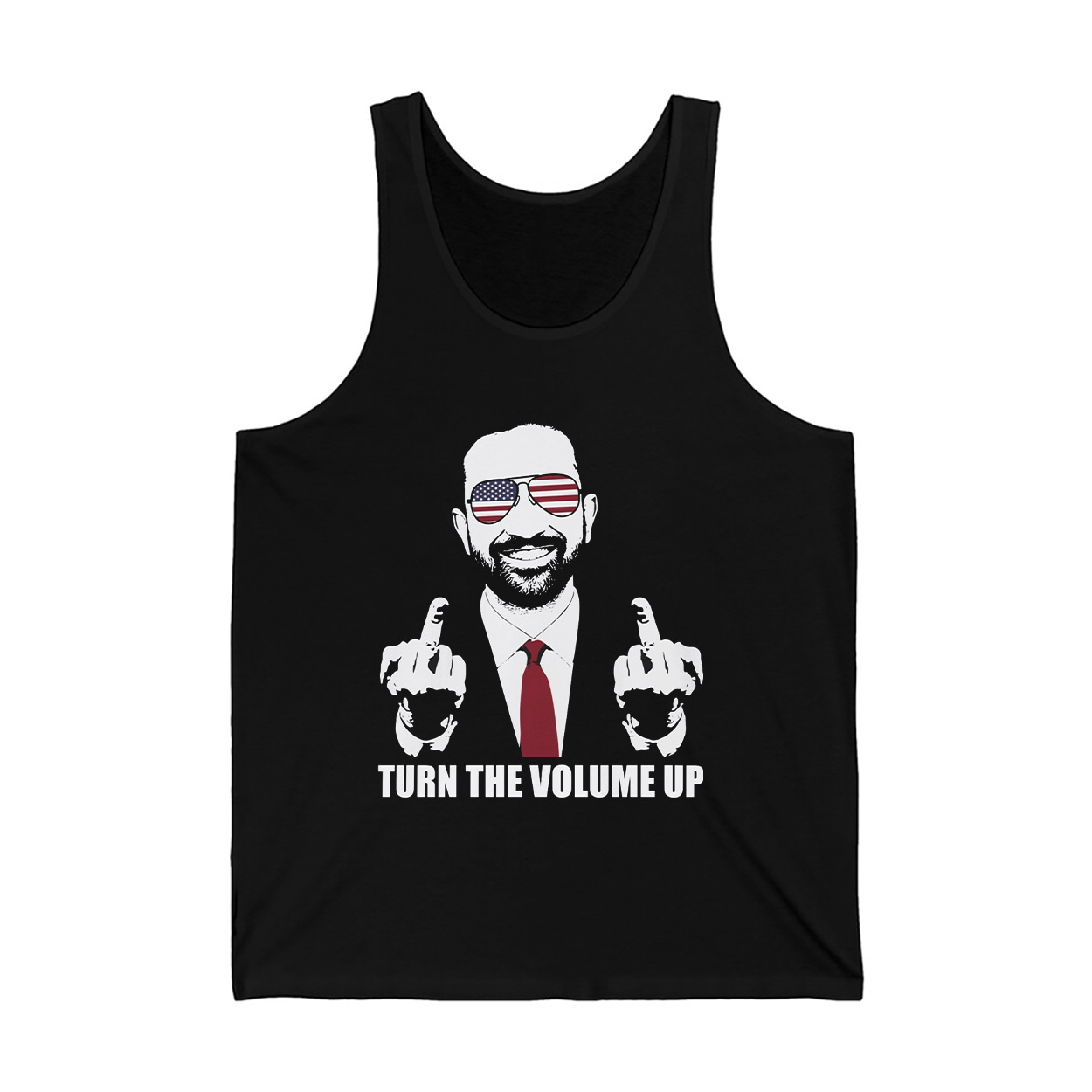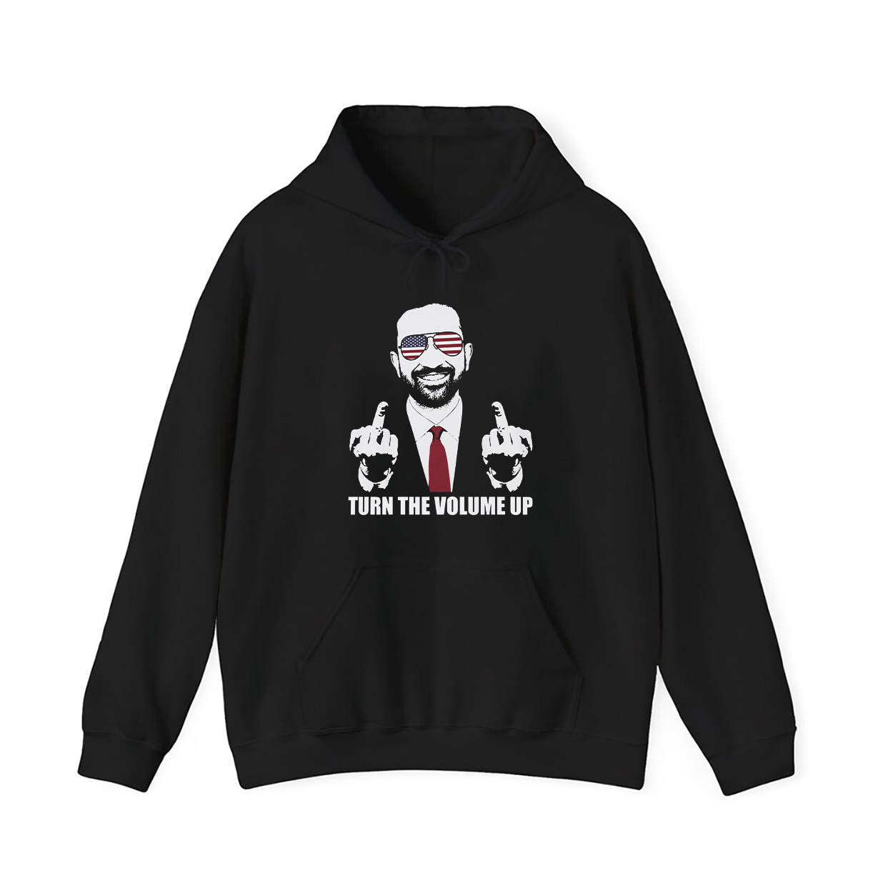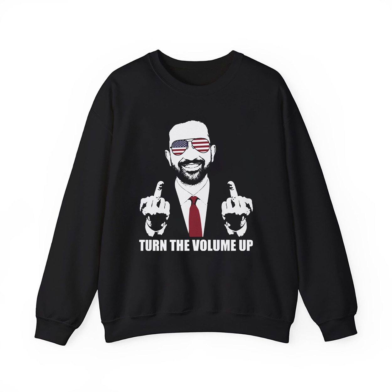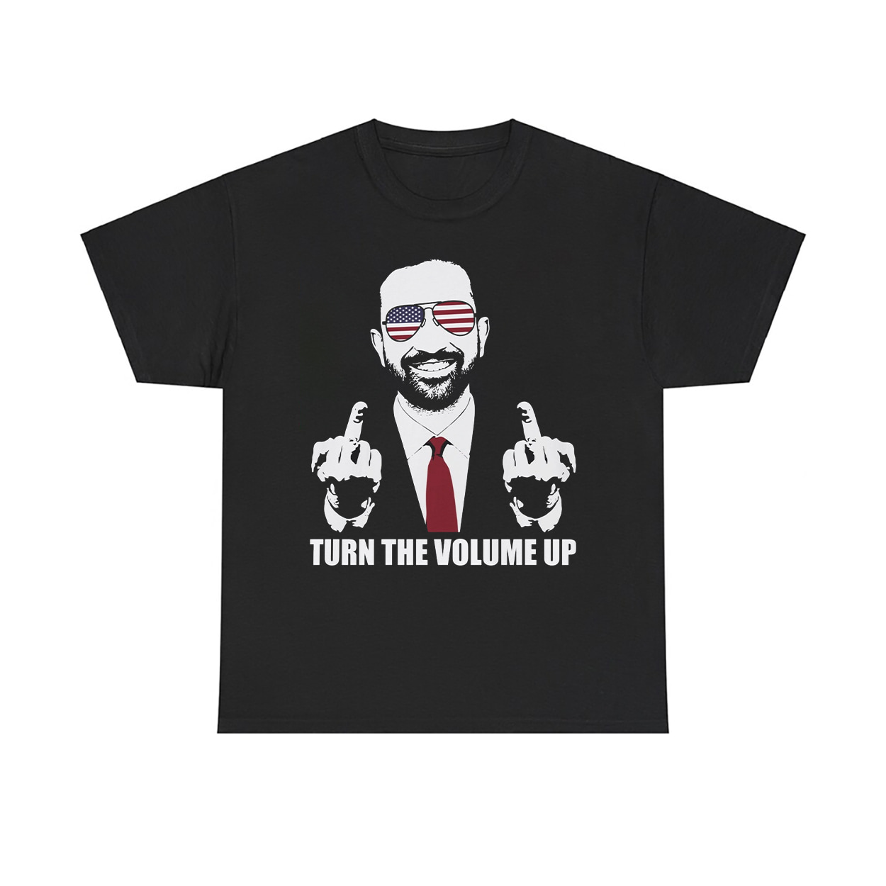 This isn’t just a shirt—it’s a snapshot of history. Featuring a graphic of Zohran Mamdani in a suit and tie, flashing two middle fingers with American flag shades and a victorious grin, this shirt immortalizes the most electrifying moment of the 2025 NYC mayoral election. Beneath the image, the bold white text reads: TURN THE VOLUME UP—a rallying cry, a mic drop, and a message that reverberated from City Hall to Capitol Hill.